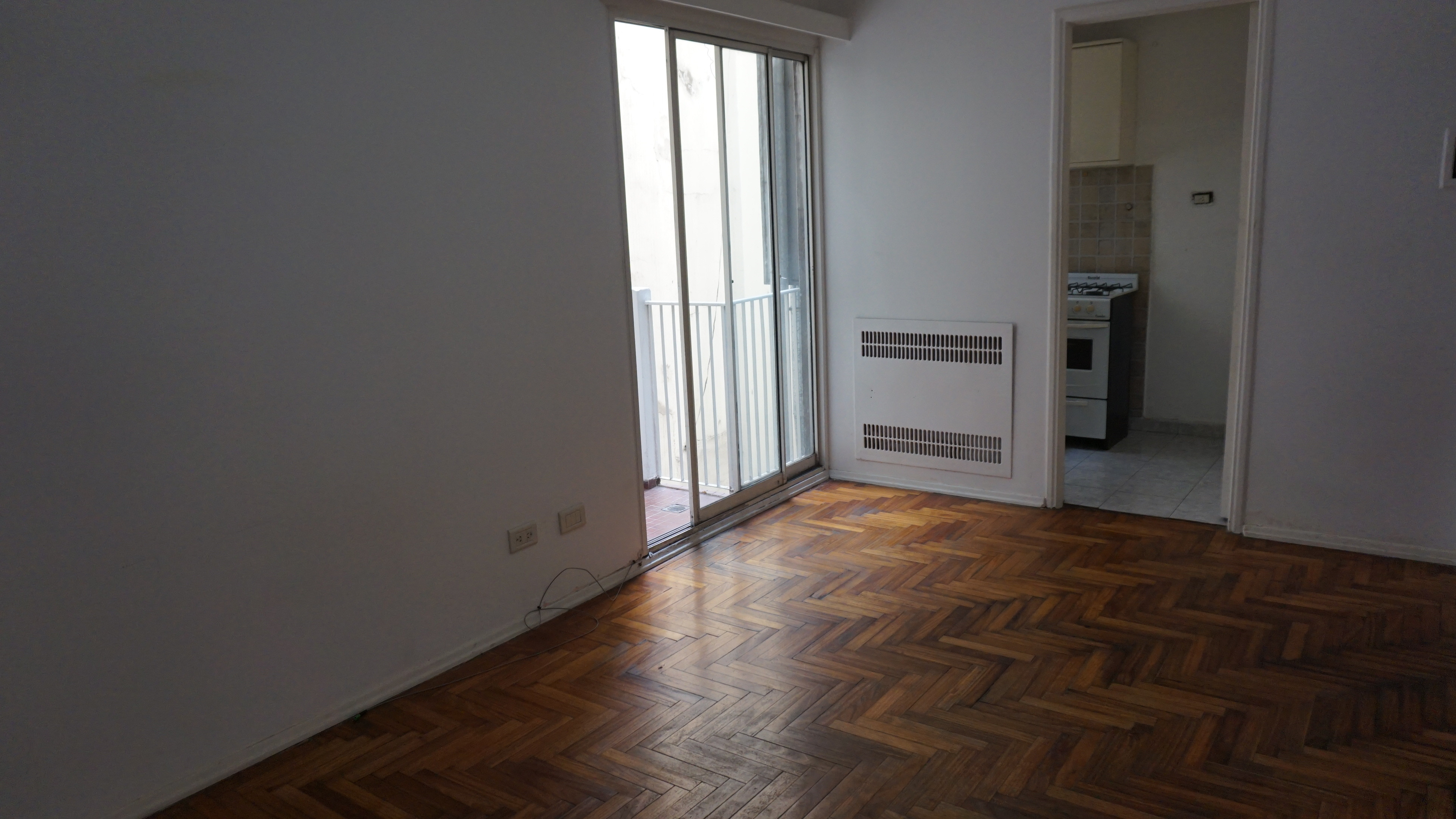 Departamento de 2 ambientes en Flores con 35 m² cubiertos. El living y el dormitorio tienen pisos de parquet. Cuenta con baño completo.
