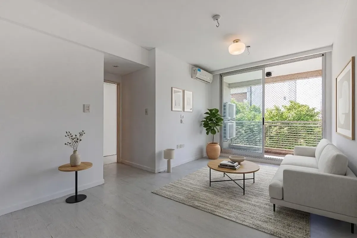 Departamento de 2 ambientes de 44 m² totales (41 m² cubiertos + 3 m² de balcón) en Flores, al frente, en el 4 piso. Living-comedor con cocina integrada, dormitorio con 2 placares empotrados y baño completo. Tiene calefacción por aire frío/calor y agua caliente por termotanque; antigüedad de 7 años. El edificio es de 6 pisos y no cuenta con amenities; incluye servicio de limpieza 3 veces por semana. Expensas aprox. febrero 2026: $190.000.