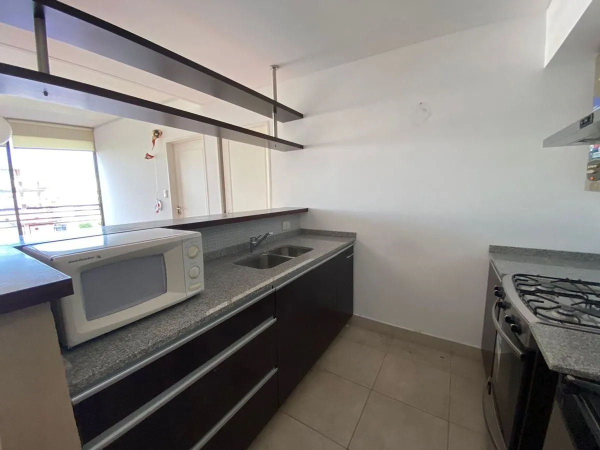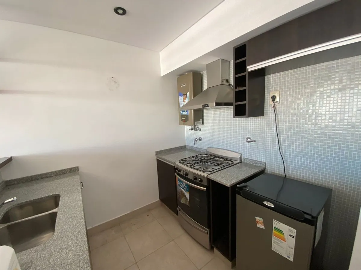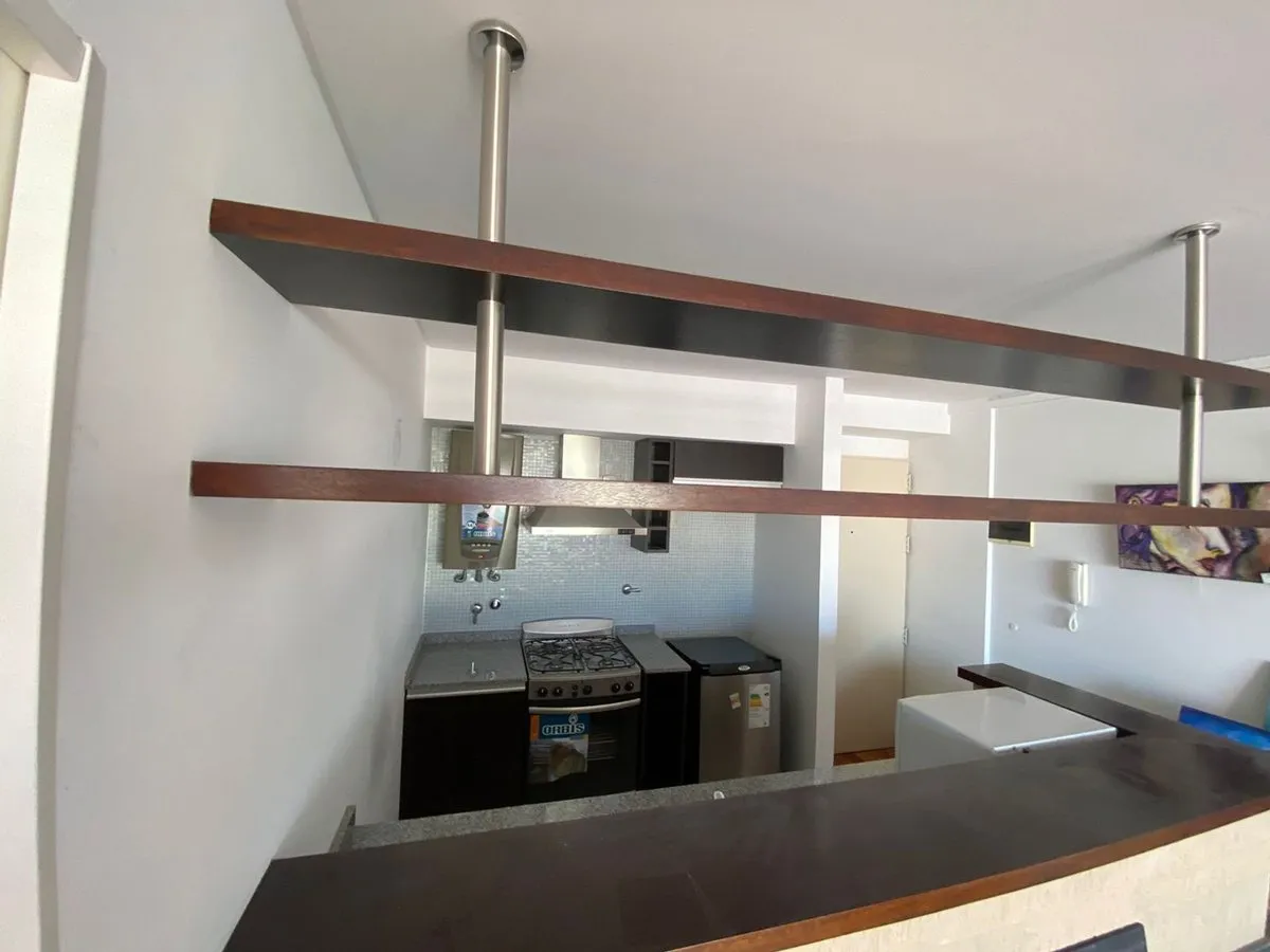 Departamento de 2 ambientes en alquiler en Flores. Cuenta con living-comedor con salida al balcón, cocina equipada con alacena y bajo mesada, toilette y dormitorio en suite con salida al balcón. Incluye baño completo. Colectivos: 44, 76, 84, 92, 99, 106, 113, 124, 172, 181.