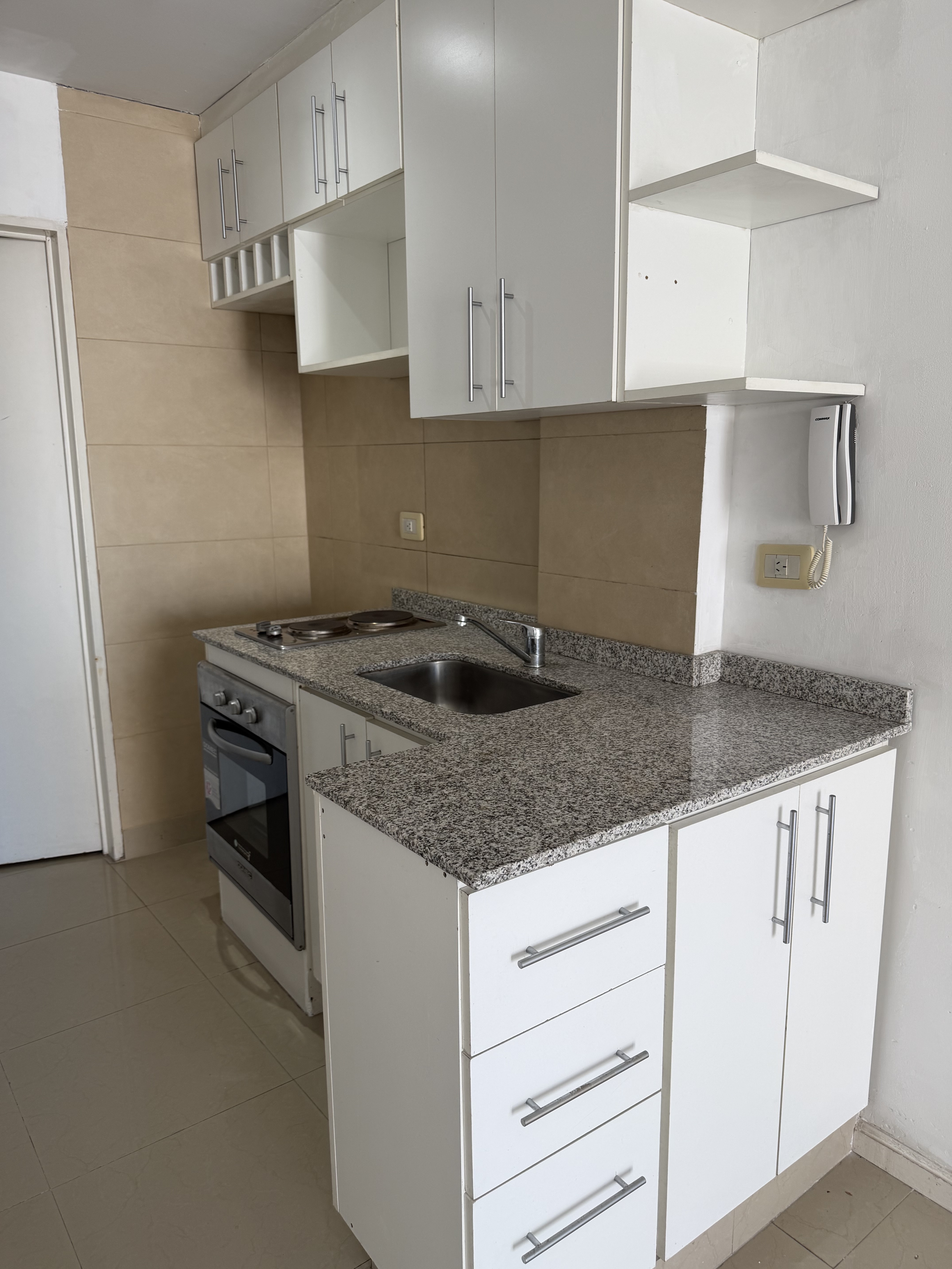 Monoambiente integrado con cocina, pisos de porcellanato y balcón al frente. Cuenta con baño completo con conexión para lavarropas, cocina con anafe y termotanque eléctrico. El edificio tiene 2 ascensores y encargado. Se requiere garantía propietaria de CABA y seguro de caución, con ingresos comprobables de inquilino y garante.