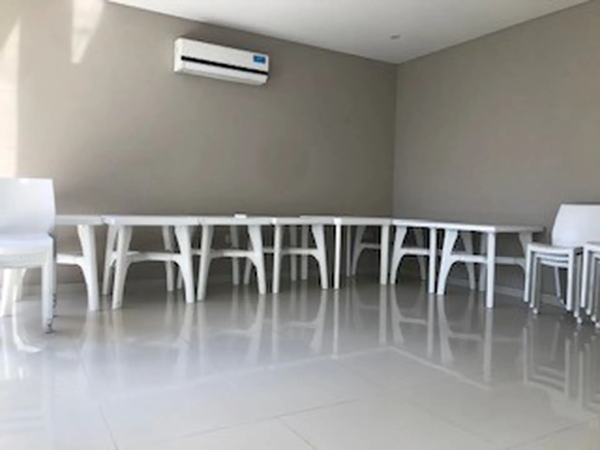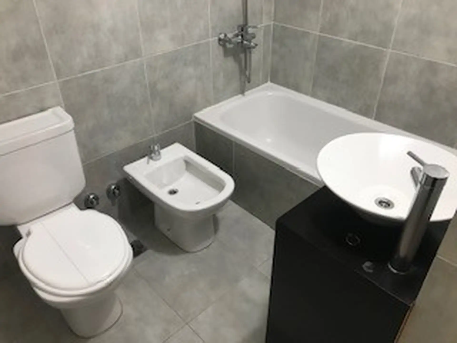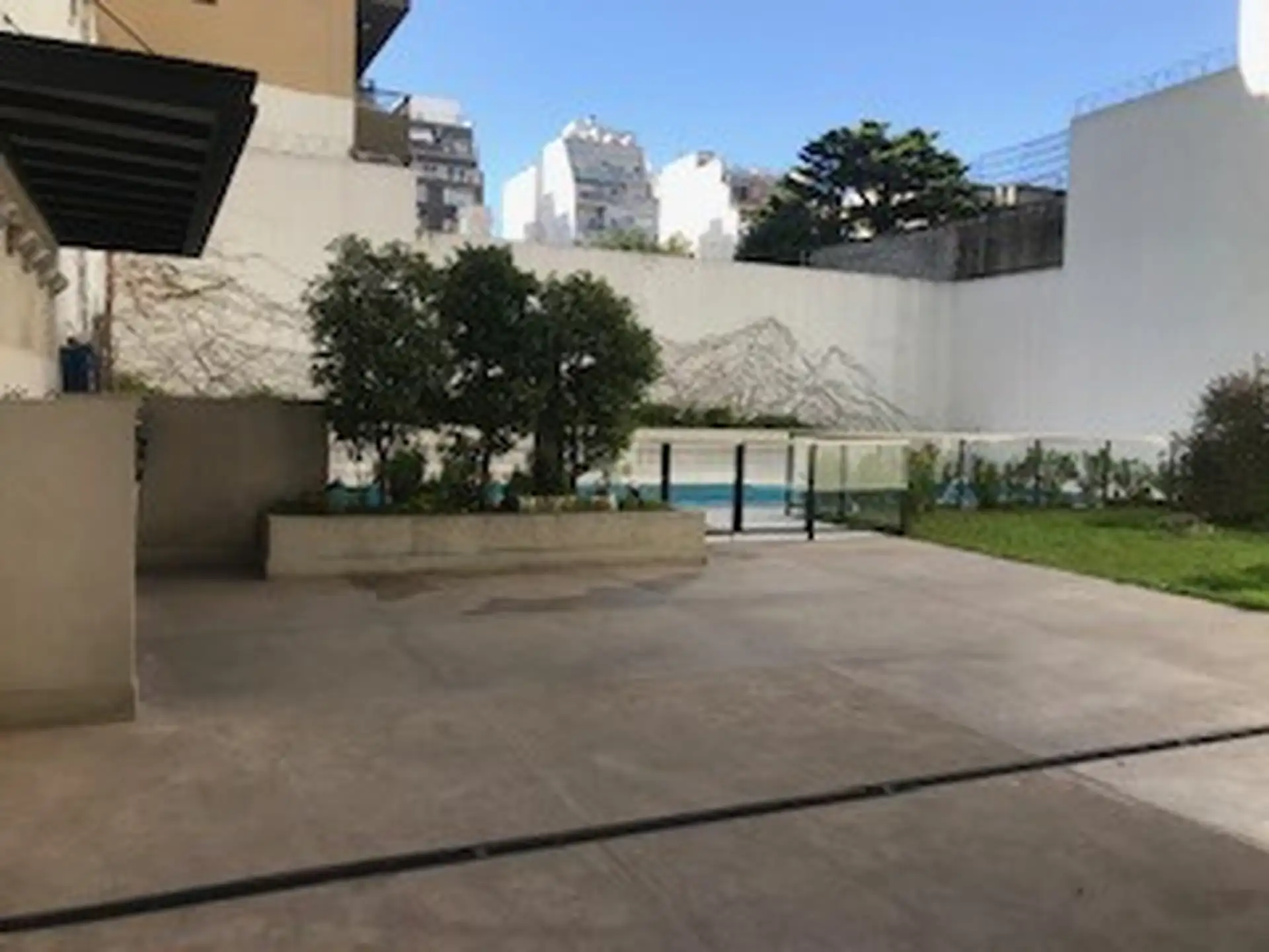 Departamento de 2 ambientes de 46 m², contrafrente, con balcón corrido y vista, orientación noroeste. Tiene 2 baños (toilette y baño completo) y dormitorio con baño en suite y placard con interiores. Cuenta con 2 equipos split instalados frío-calor. El edificio dispone de SUM, gimnasio, laundry, jacuzzi, parrillas, piscina y seguridad 24 hs. Las expensas ($212.000) incluyen AYSA, seguridad 24 hs, encargado y amenities. No apto mascotas.