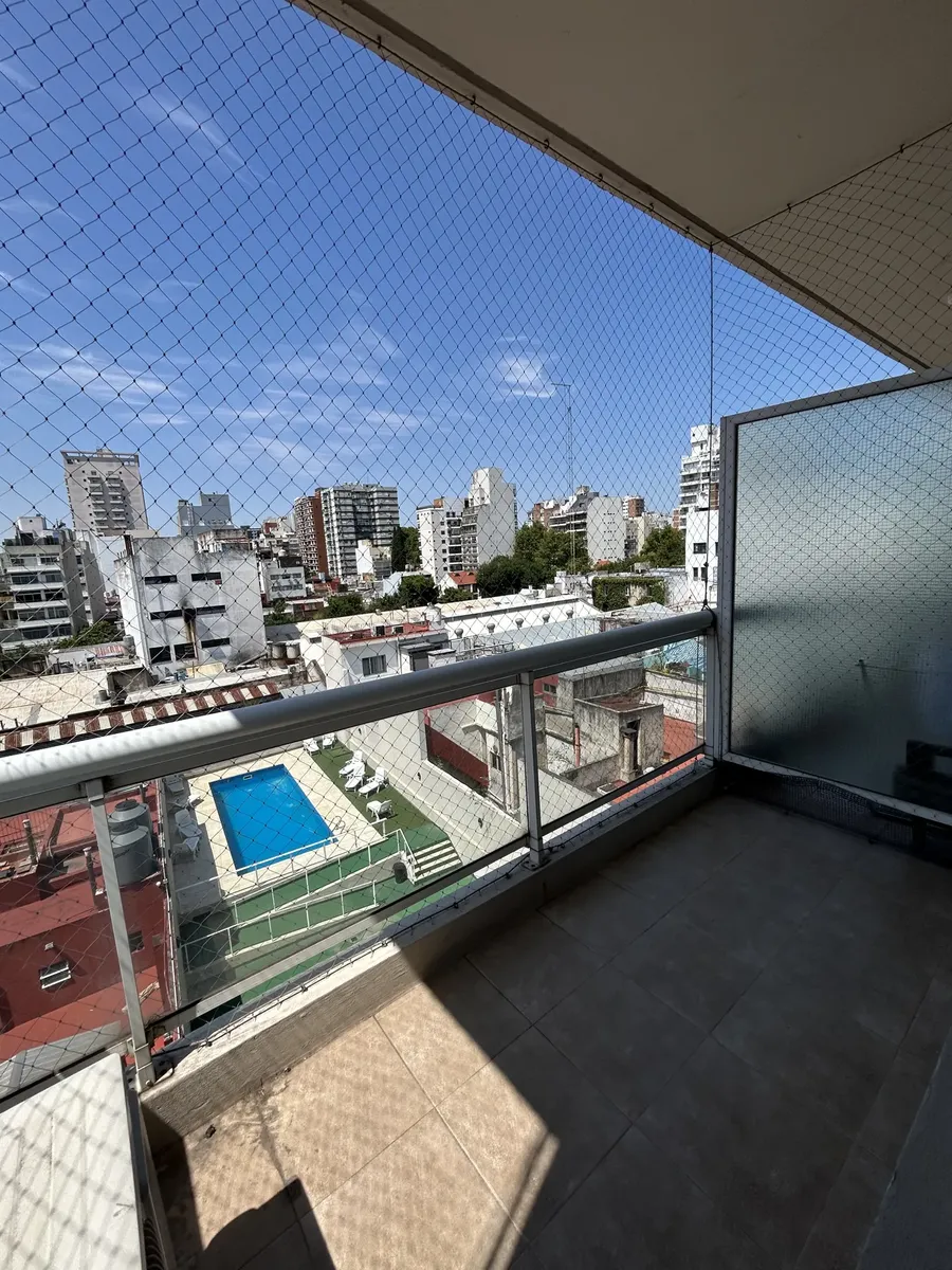 Departamento monoambiente dividido con balcón en Flores. El edificio cuenta con piscina, SUM y parrilla.