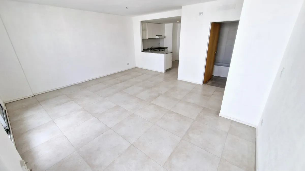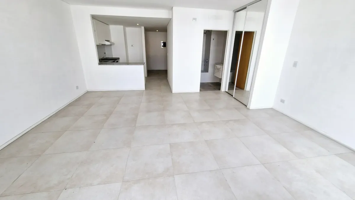 Departamento divisible de 1 ambiente de 48 m², piso 3 contra frente, con balcón corrido. Apto profesional, con ambiente de 5.30 x 4.80 y placard espejado, y cocina integrada de 2.80 x 2.30 con bajo mesada, alacena, barra desayunadora e instalación para lavarropas. Cuenta con baño completo con vanitory y bañera, toilette con vanitory, piso de porcelanato y grifería monocomando. El edificio tiene pileta, quincho con parrilla, solarium y lobby; expensas con Aysa incluido. A 150 metros de Av. Rivada