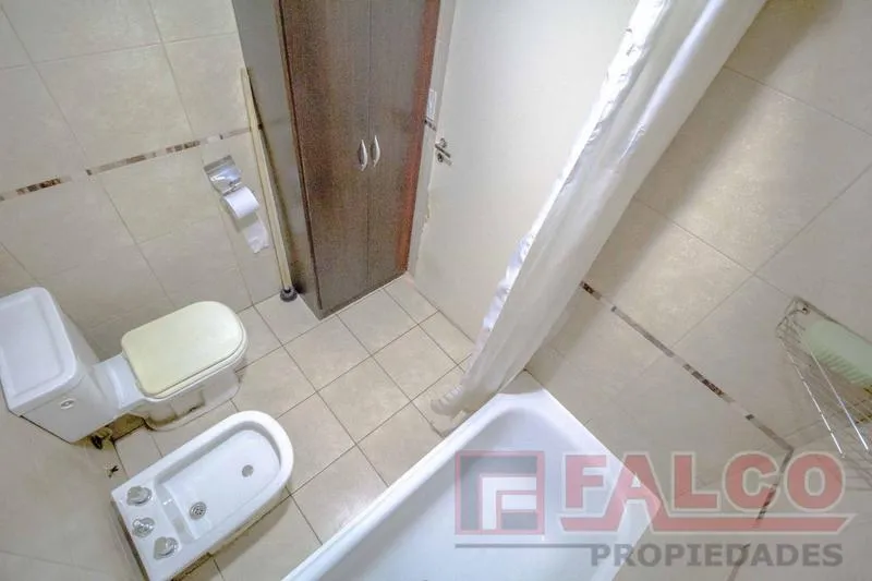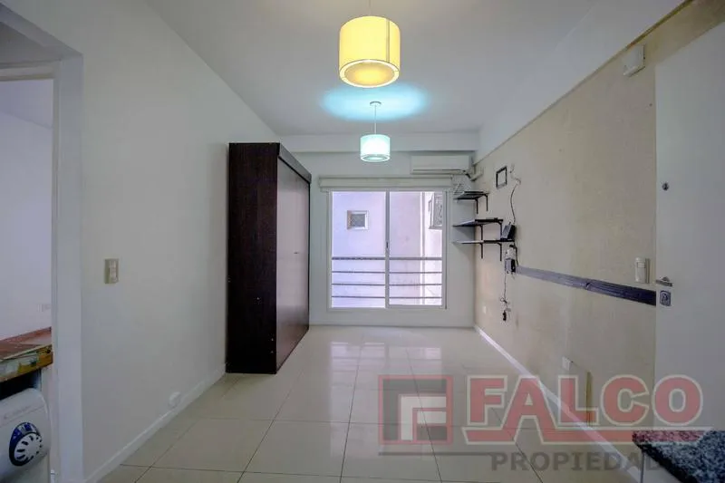 Departamento de 2 ambientes en Flores con aire acondicionado y heladera Patrick. La habitación tiene placard y baño completo. El edificio cuenta con SUM con parrilla y piscina. No se admiten mascotas. Se requiere garantía de capital o garantía Finaer y justificación de ingresos.