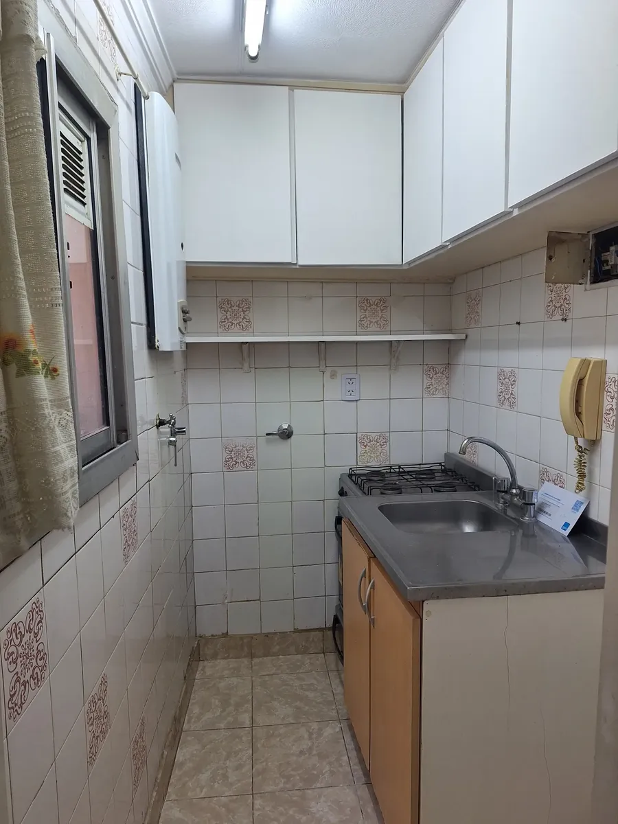 Departamento de 2 ambientes en alquiler, 7° piso, sobre Av. Rivadavia y Dolores. Cuenta con living con balcón francés, cocina independiente y dormitorio con placard. Tiene vista a pulmón de edificio y fue recién pintado; expensas aproximadas $90.000.