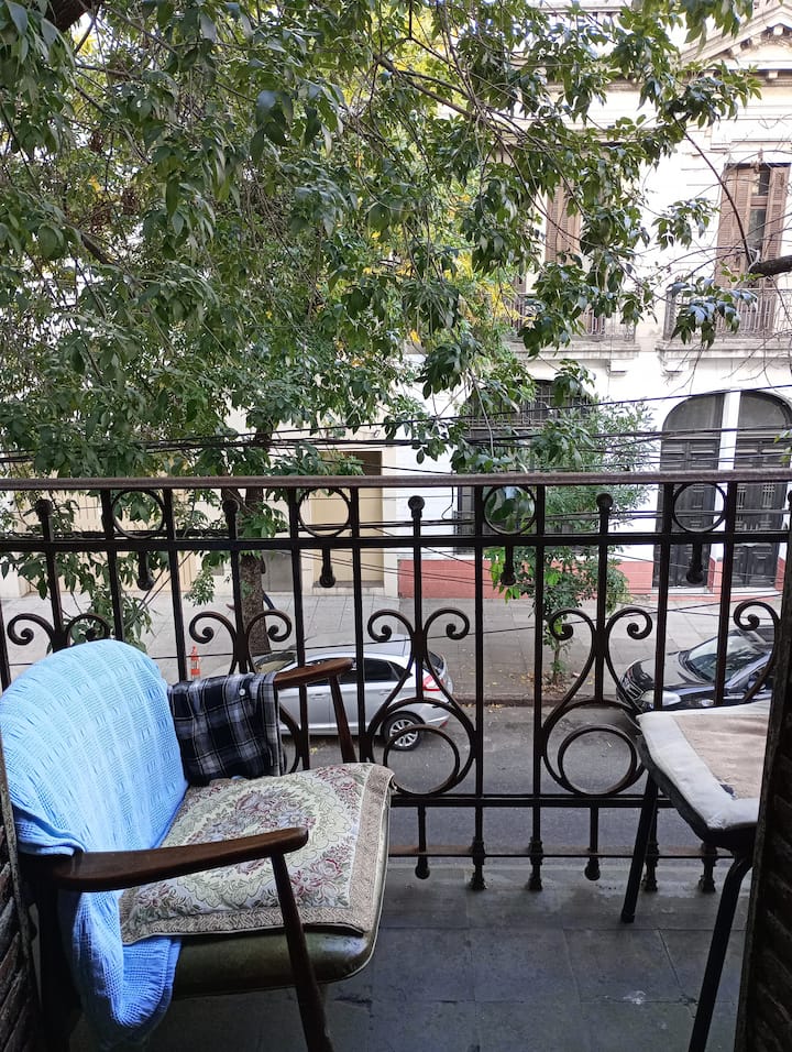 Habitación en una casa familiar compartida en Floresta, con balcón. Hay un baño compartido. Cuenta con pisos de madera originales y techos altos.