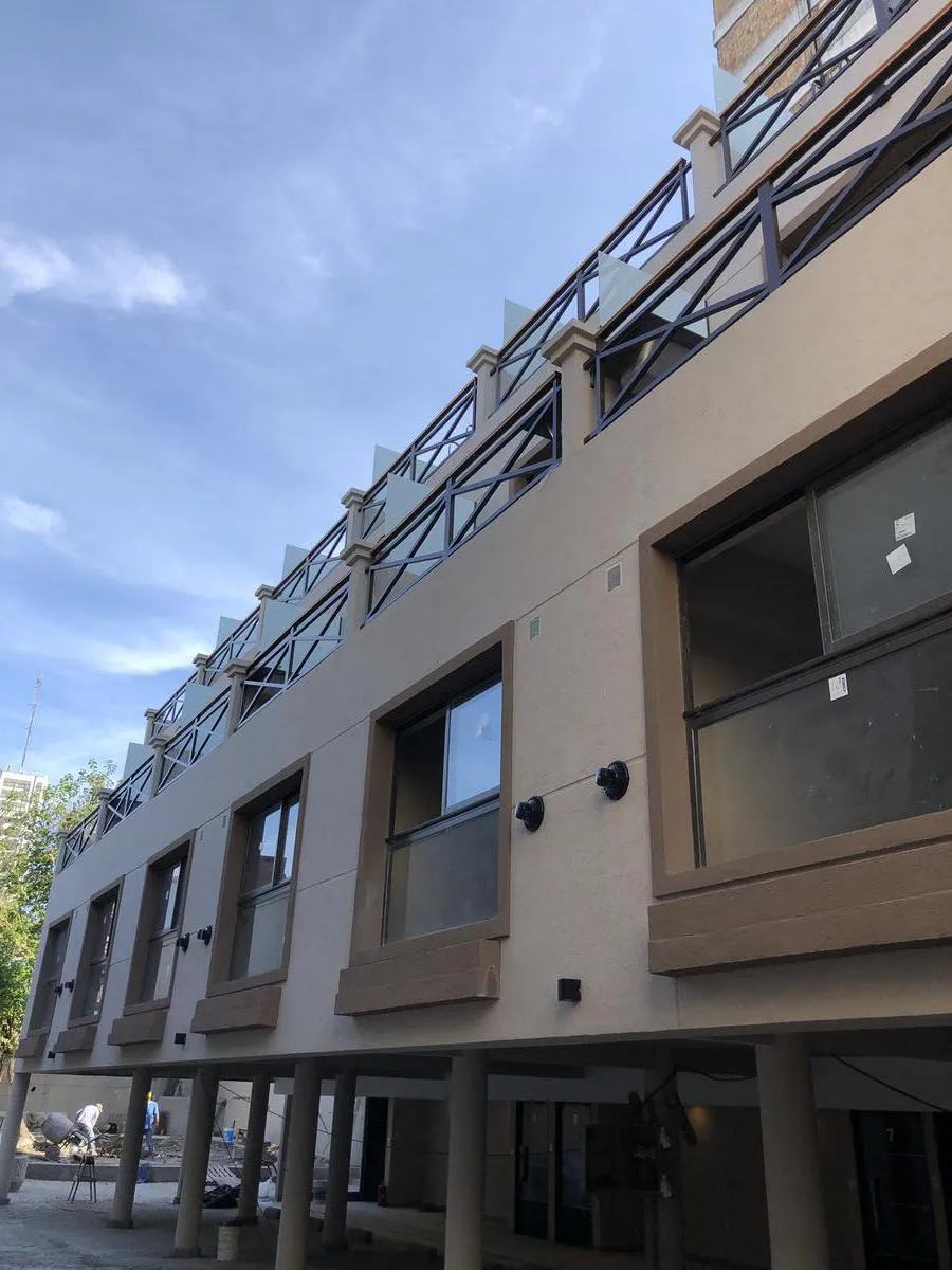 Departamento dúplex tipo PH en complejo privado, de 2 ambientes (1 dormitorio) y 2 baños (1 baño completo y 1 toilette). Cochera propia techada y baulera en planta baja; en el piso 1, cocina con alacenas y bajo mesada, living comedor con toilette de recepción y ventanal. En el piso 2, dormitorio con placard, baño completo y balcón privado con mesada y pileta para lavarropas. Cuenta con iluminación incorporada en todos los ambientes y calefacción a gas de tiro balanceado. El complejo tiene área d