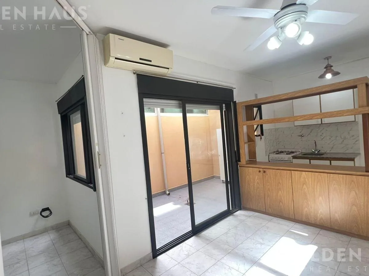 PH de 2 ambientes en planta baja en Floresta, dentro de un complejo de 12 unidades. Cuenta con 1 dormitorio con placard empotrado y ventilación al patio, living comedor con salida a un patio de 8 m2 con techo rebatible, y lavadero; incluye cocina con alacena, bajo mesada y barra desayunadora. Tiene baño completo y termotanque a gas, aire acondicionado instalado y ventilador de techo. Bajas expensas de $39.000 e incluyen Aysa. Requiere seguro de caución, ingresos demostrables, depósito de USD 600