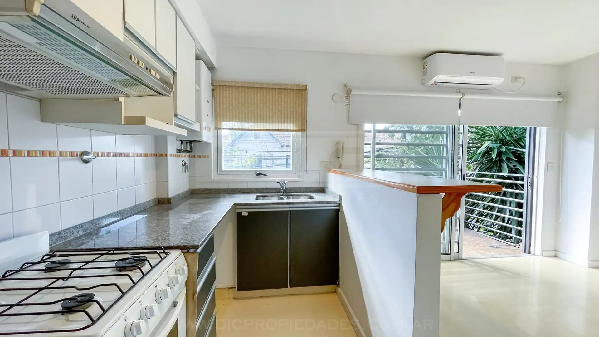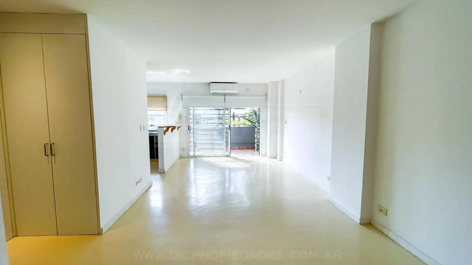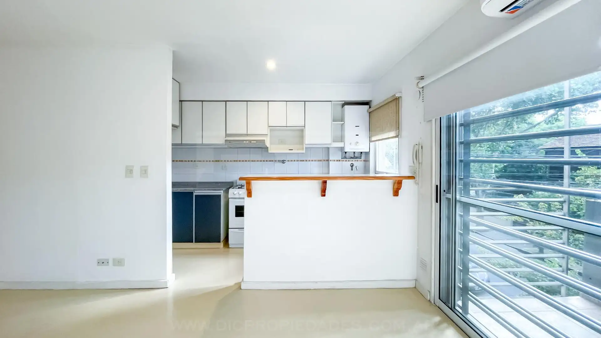 Kitnet de 40 m² em Florida Mitre, com living e cozinha integrada com barra. Banheiro completo, armário grande do tipo piso ao teto e ar-condicionado frio/calor. Cortinas black out e acesso a uma varanda ampla com vista aberta para a rua Melo. O prédio tem segurança 24 horas, piscina com solário, área de churrasco de uso comum, salão comunitário equipado e lavanderia. Fica a poucos passos da Estación Florida (Tren Mitre).