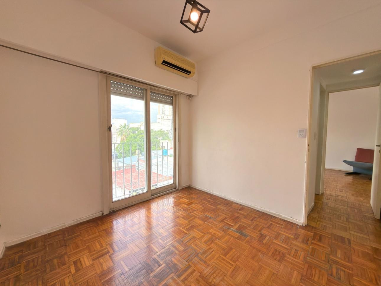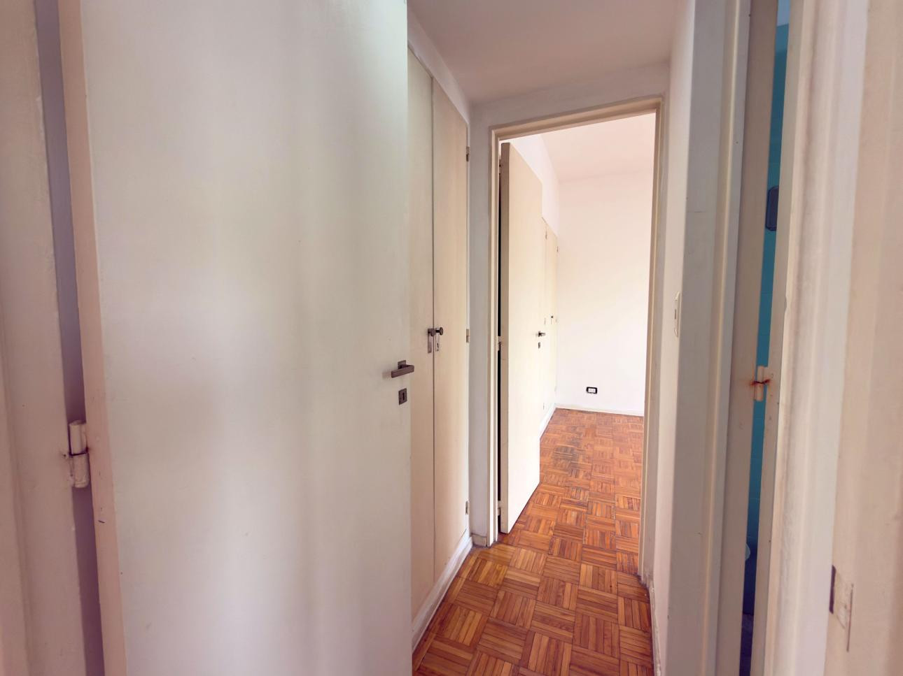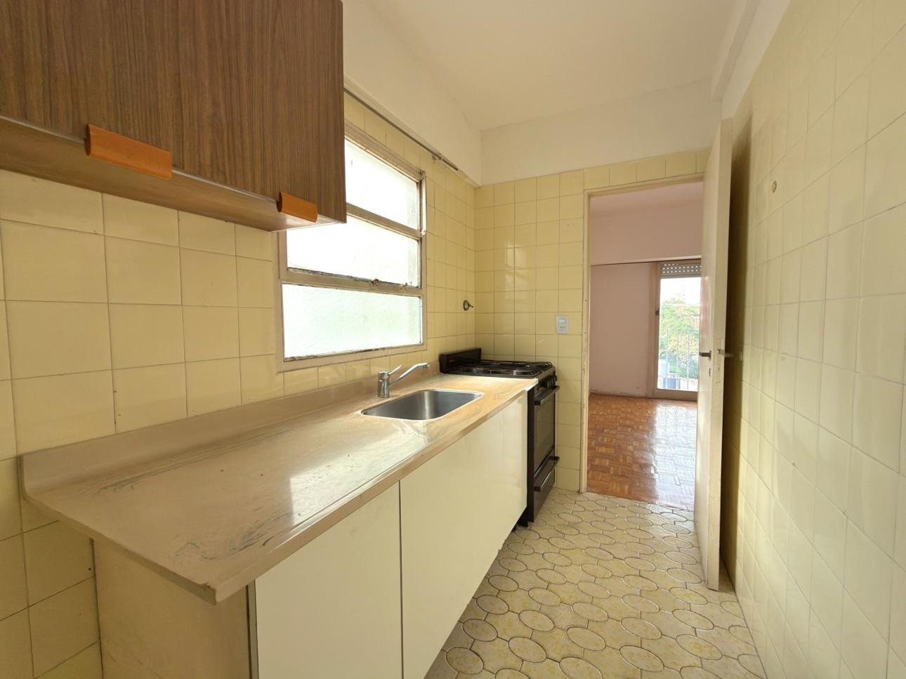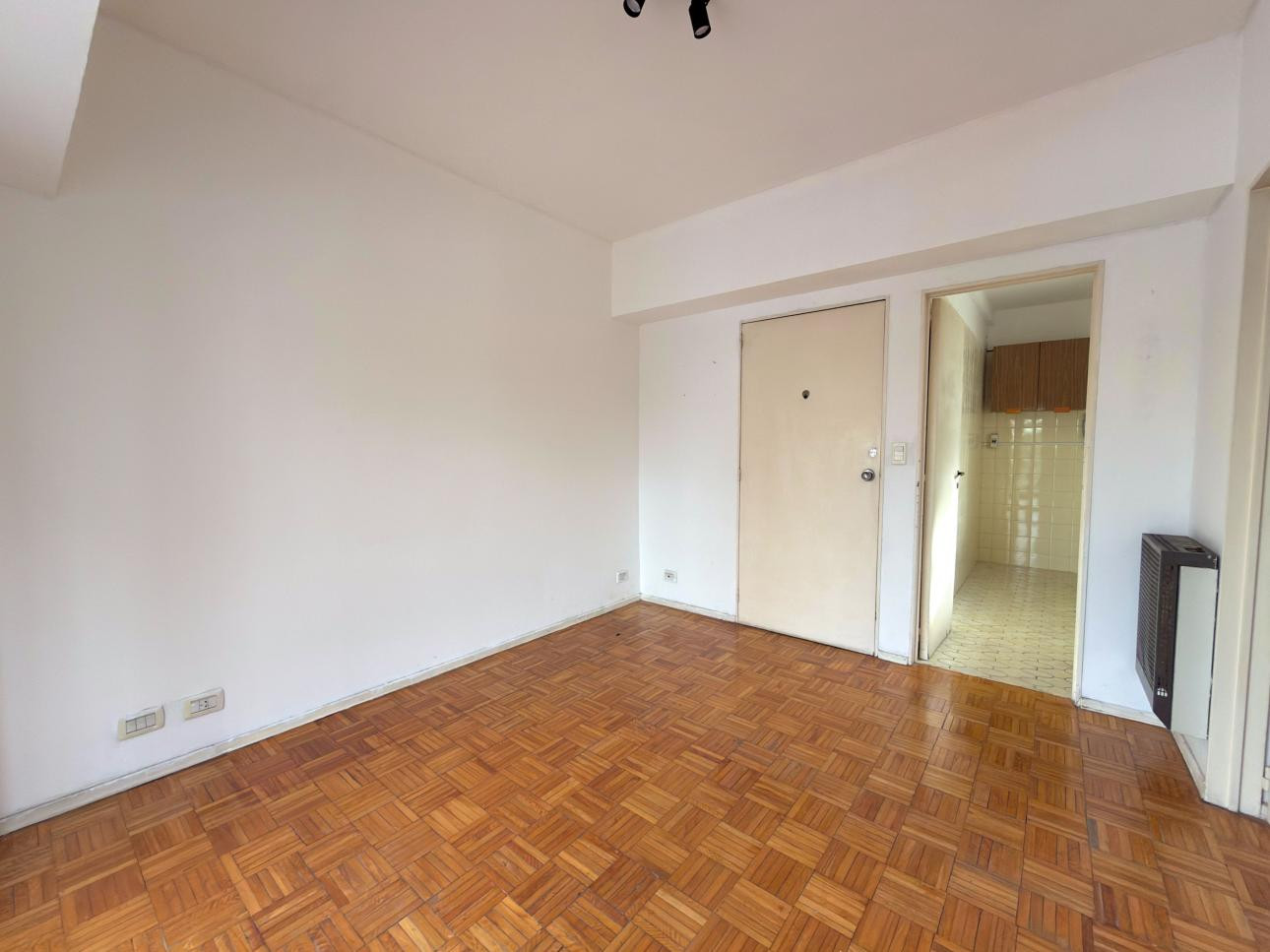 Departamento de 2 ambientes de 1 dormitorio en un edificio en torre con ascensor, en el 3er piso al frente. Cuenta con living comedor, ventanal al frente con persiana y balcón francés, y pisos de parquet. Cocina separada con artefacto a gas, espacio para heladera y conexión para lavarropas; dormitorio con placard y pisos tipo parquet.