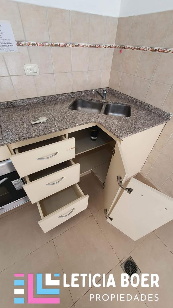 Departamento monoambiente céntrico con cocina americana, mueble bajo mesada, anafe y horno eléctrico, y conexión para lavarropas o lavavajillas. Cuenta con baño completo. El edificio dispone de agua caliente central y 2 ascensores.