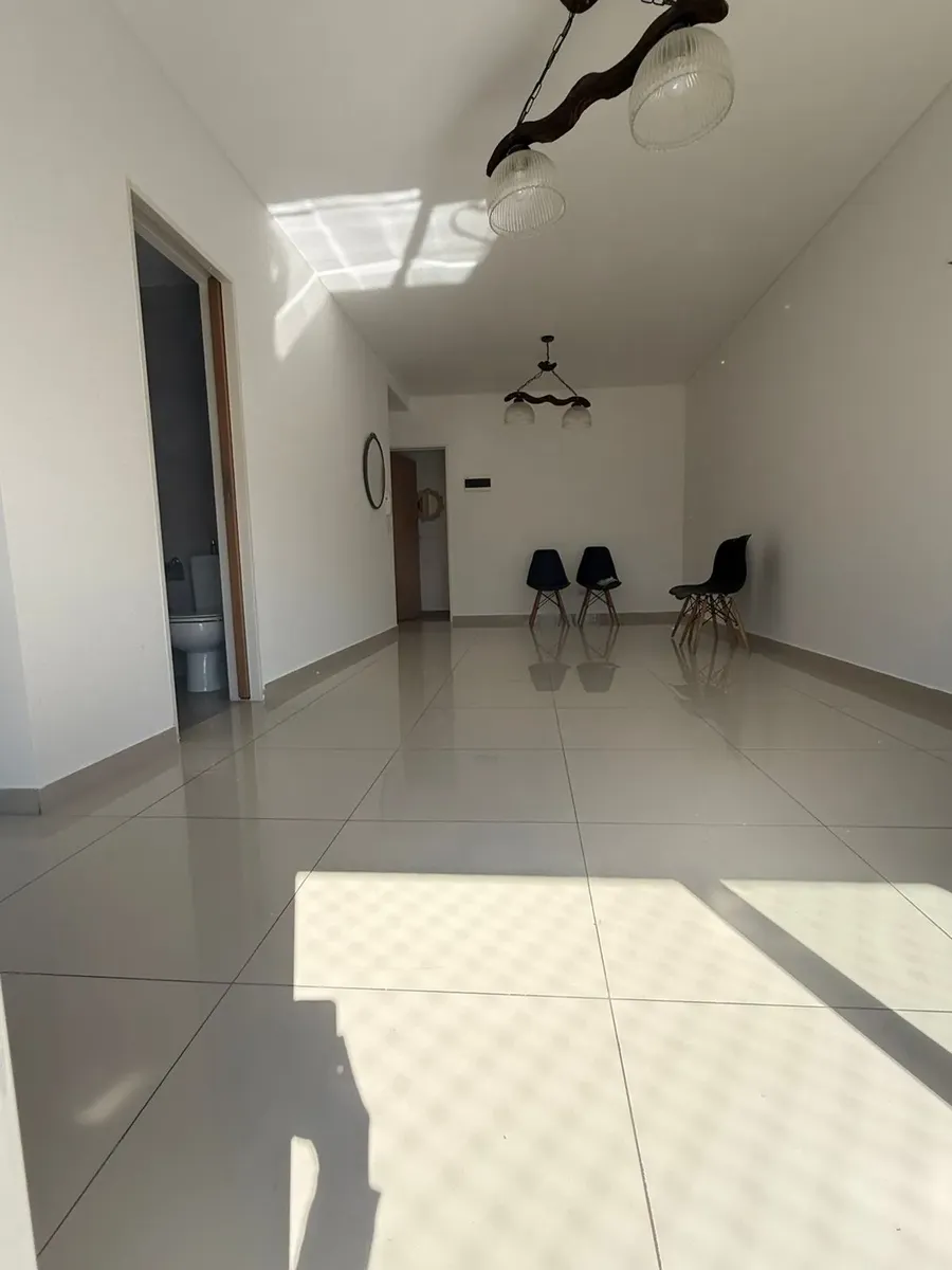 Departamento de 2 ambientes de 45 m² totales al contrafrente, con balcón. Incluye cocina semi integrada al living comedor, baño completo y dormitorio con placard. Cuenta con aire frío-calor en el living y cortinas, y el edificio dispone de parrilla de uso común.