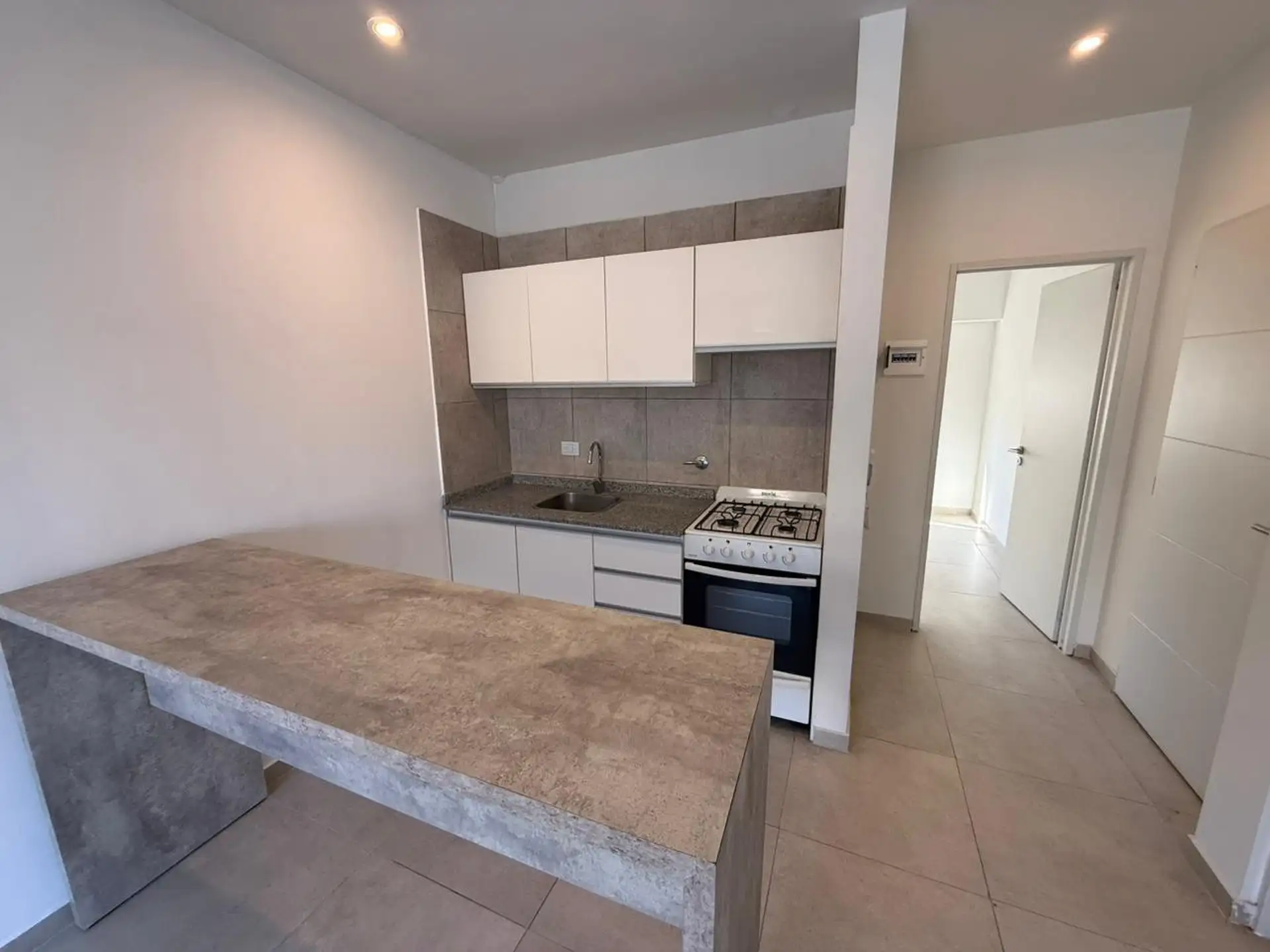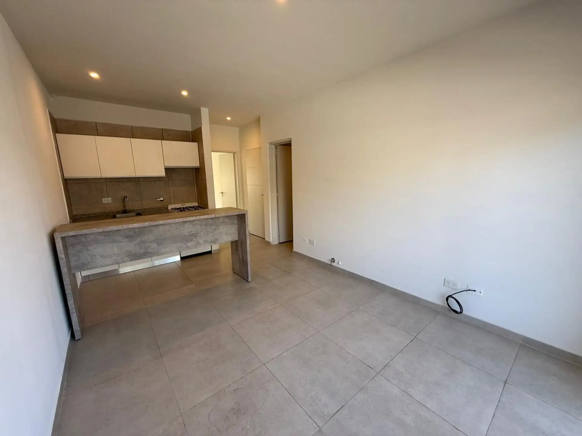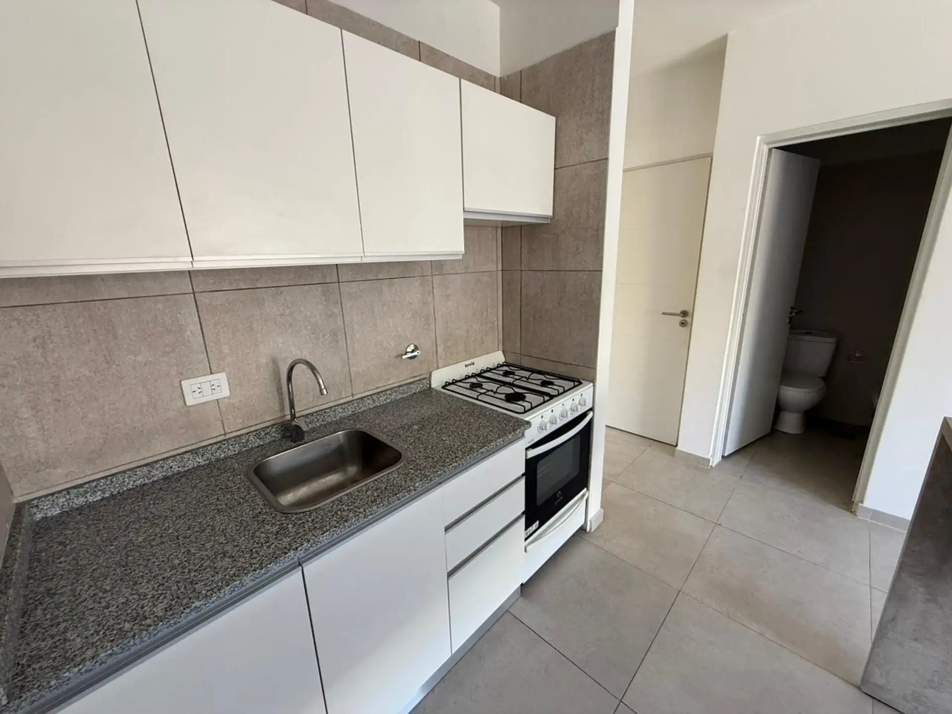 Departamento de 2 ambientes en José León Suárez. Cuenta con cocina comedor con barra desayunadora, muebles de alto y bajo mesada y dormitorio con placard. Incluye balcón con conexión para lavarropas. Se permite alquiler sin mascotas.