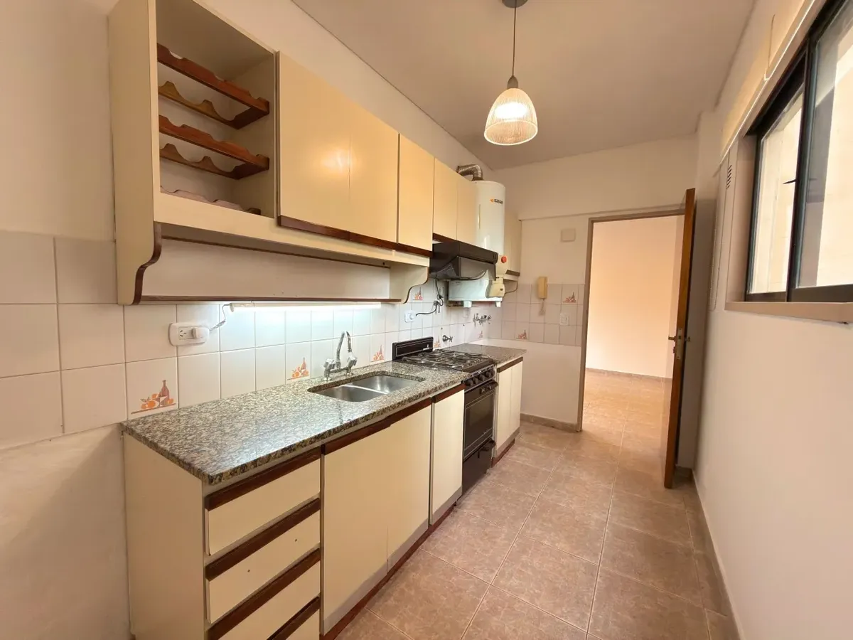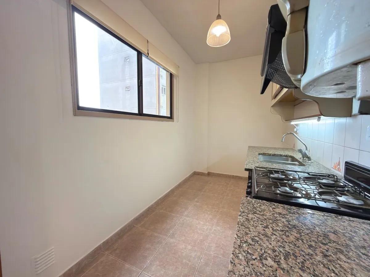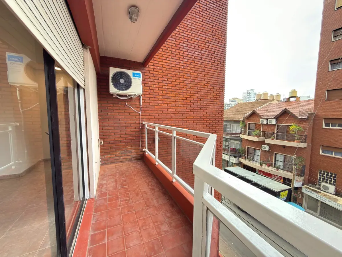 Departamento de 2 ambientes al frente, en 3er piso, con orientación noreste y balcón. Climatización completa con aire acondicionado frío/calor y calefacción a gas. Cocina separada con cocina a gas con extractor, espacio para heladera y conexión para lavarropas; lavadero con ventilación natural por ventana. Dormitorio con placard de piso a techo con interiores y baulera. Edificio torre de 7 pisos con ascensor, hall de ingreso y pasillos de dimensiones cómodas.
