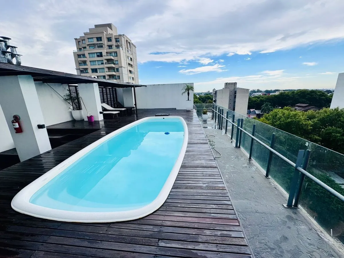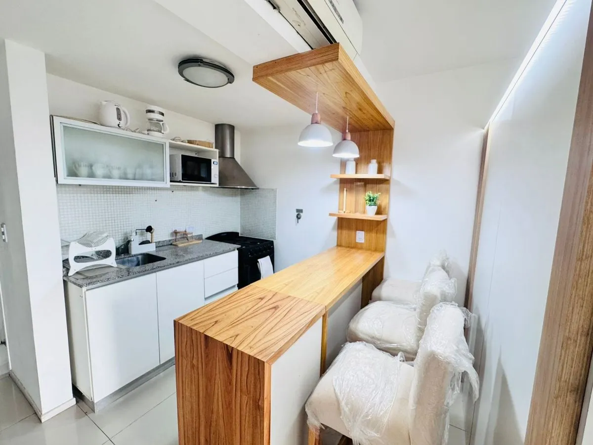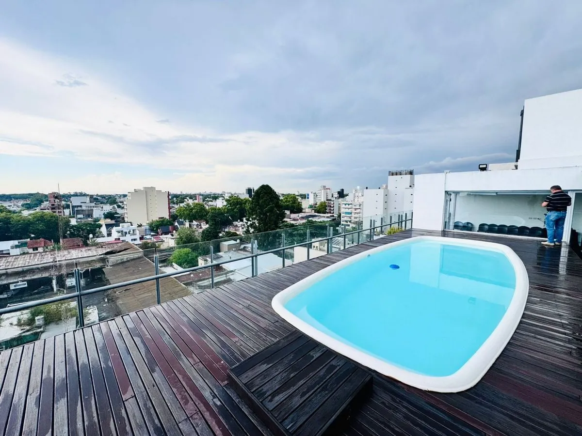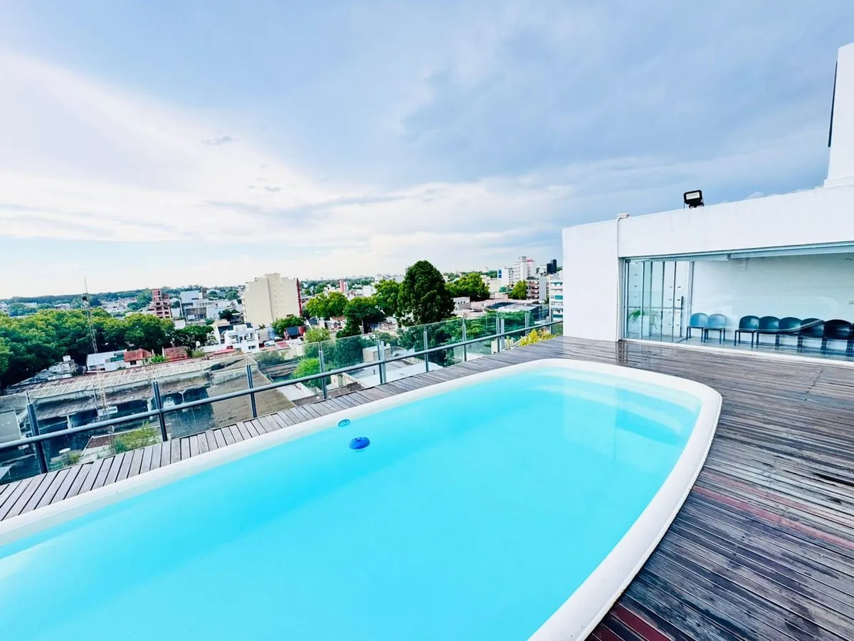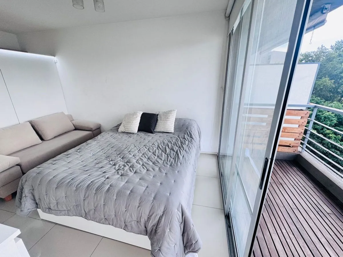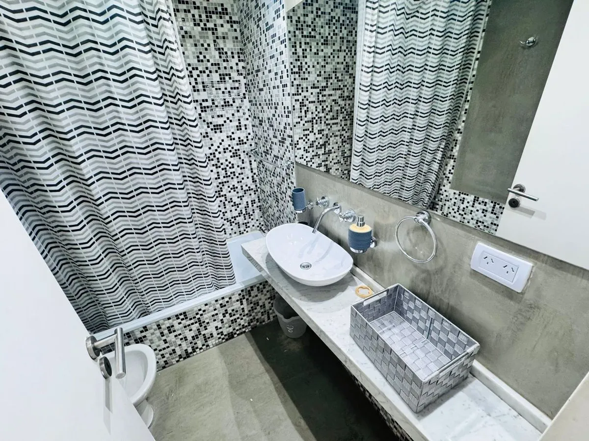Departamento monoambiente de 30 m² en el 4° piso, en San Martín, sobre Av. Rivadavia. Está equipado y dividido en 2 ambientes, con cama de 1,40 x 2 m, sofá de 3 cuerpos convertible y TV LED, además de aire acondicionado frío/calor y placard de doble puerta corrediza. Desde el dormitorio se accede a un balcón al contrafrente con vista abierta. Cocina equipada con horno microondas, cafetera, pava eléctrica y vajilla completa, y baño con bañera y extractor de aire. El edificio tiene 2 ascensores, p
