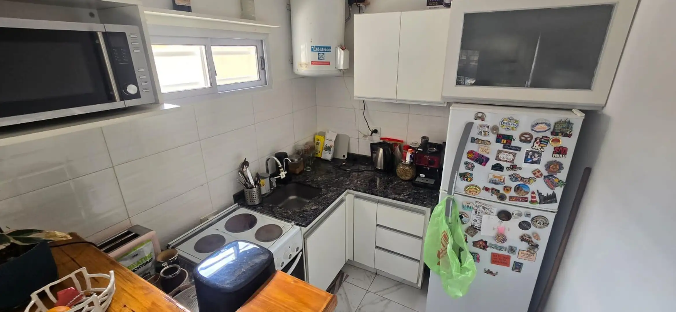 Departamento en primer piso por escalera, dentro de un complejo residencial. Al ingresar, cuenta con living comedor integrado con cocina separada por un desayunador. Incluye 1 baño completo y 1 dormitorio con salida a balcón. El techo es de losa y los pisos son cerámicos; el complejo dispone de quincho con parrilla en la planta superior. Se ubica con acceso rápido a la Avenida Brigadier Juan Manuel de Rosas y a Villa Ballester.