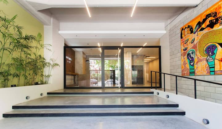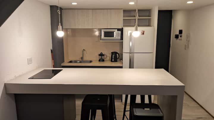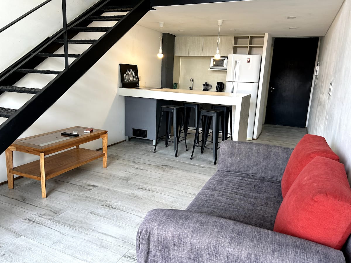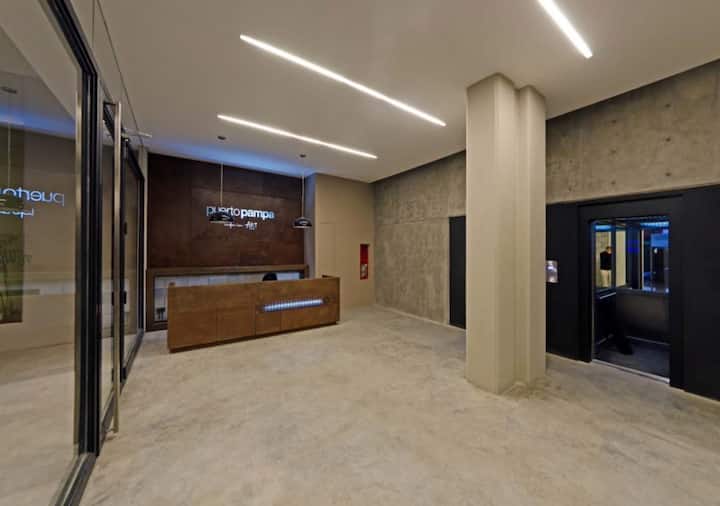 Loft en el complejo Puerto Pampa, en Catalinas Sur, dentro del distrito de las Artes, a pasos de Usina del Arte, Museo Pablo Ducrós Hicken, Casino Flotante y Caminito. Cocina con barra desayunadora, cocina de 2 hornallas, horno eléctrico y microondas. Cuenta con balcón, baño, dormitorio con amplio vestidor y sistema de climatización. Hay vigilancia 24 horas y laundry.
