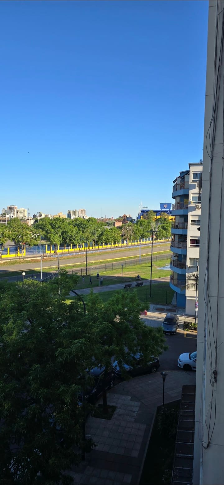 Departamento en La Boca, a metros de la Barcha de Boca, en la ruta hacia la zona de arte y Puerto Madero. Se encuentra a 1 cuadra del transporte, a 1 cuadra de Parque Lezama y a 10' del Obelisco y del Centro porteño. Incluye el departamento completo, baño y cocina privada.