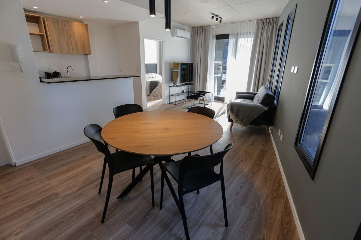 Departamento a estrenar en La Boca con vista a La Bombonera. El edificio ofrece seguridad 24 horas, recepción, spa, pileta, duchas, gimnasio y cine. Incluye desayuno y cuenta con la propuesta gastronómica de Restaurante Genovés en planta baja.