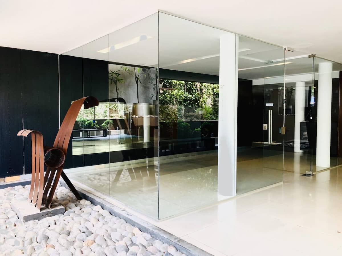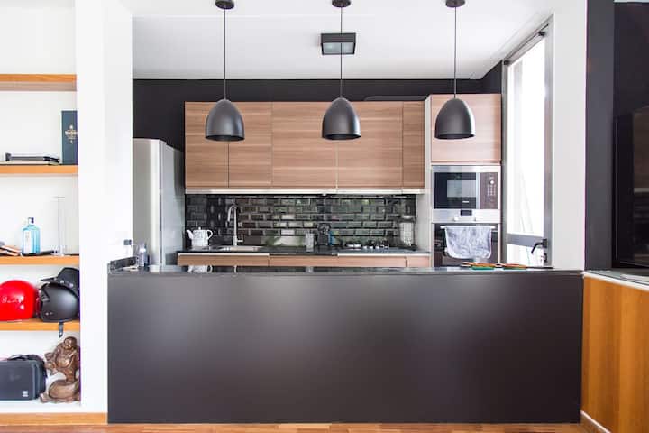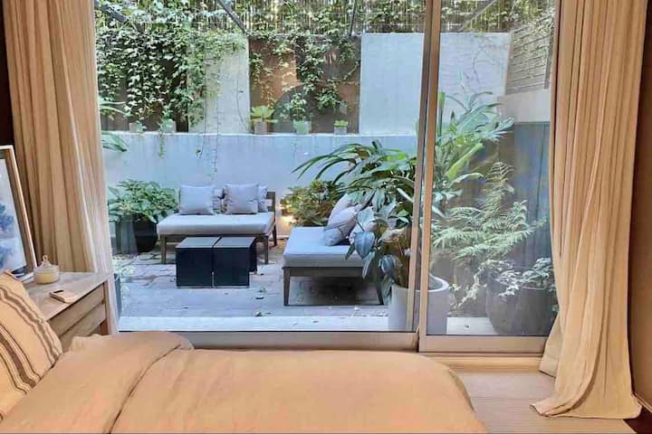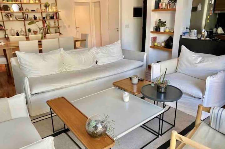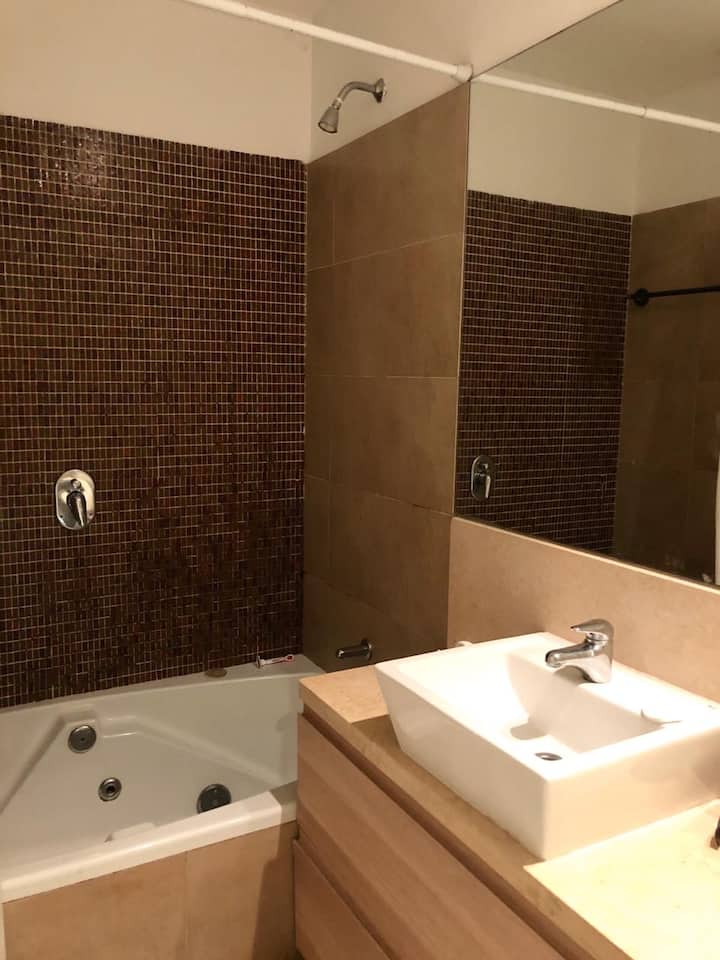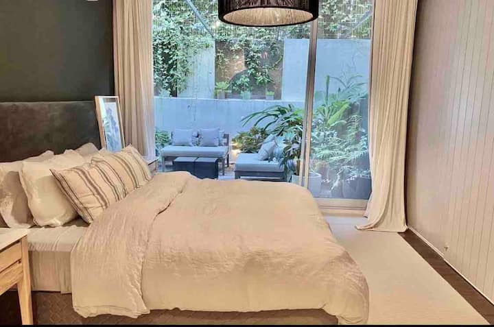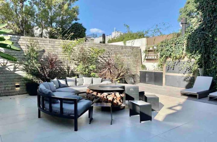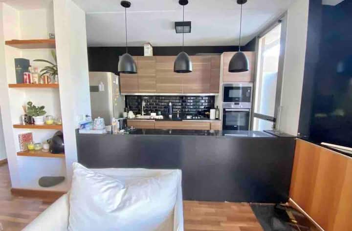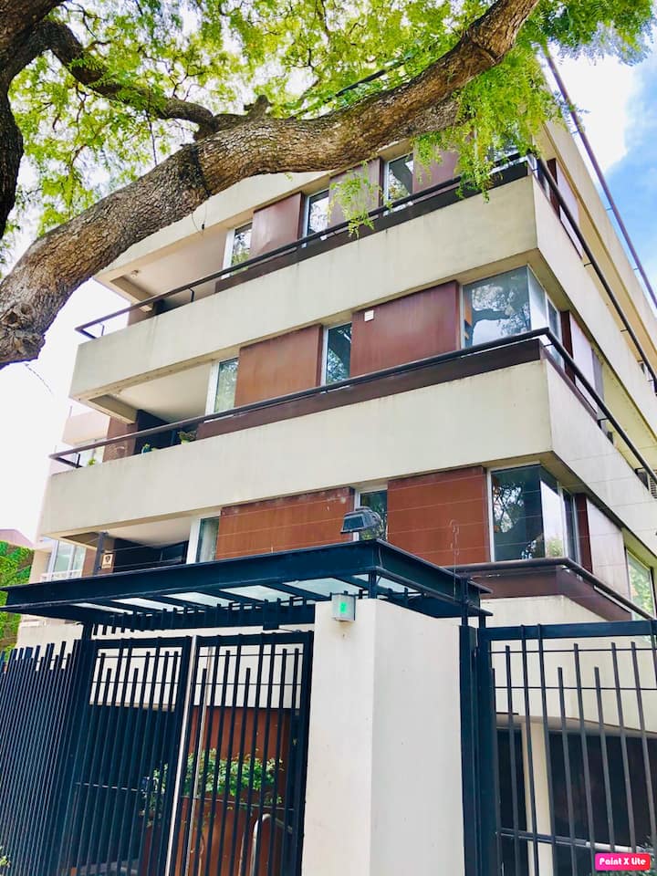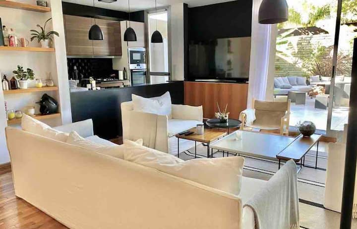 Departamento de 1 dormitorio en La Lucila, en un edificio sobre Av. Del Libertador. Tiene ventana de piso a techo con acceso al patio. El edificio cuenta con pileta. El patio tiene parrilla, ducha y hogar. El alquiler incluye restricción de fiestas y eventos con música alta; el incumplimiento puede derivar en rescisión.