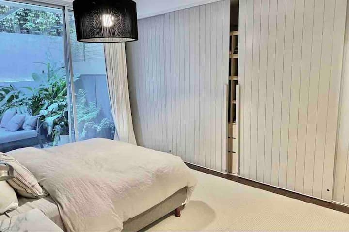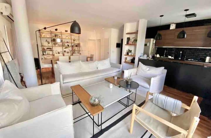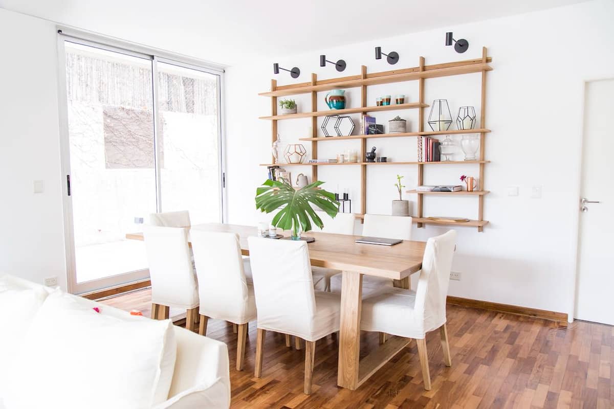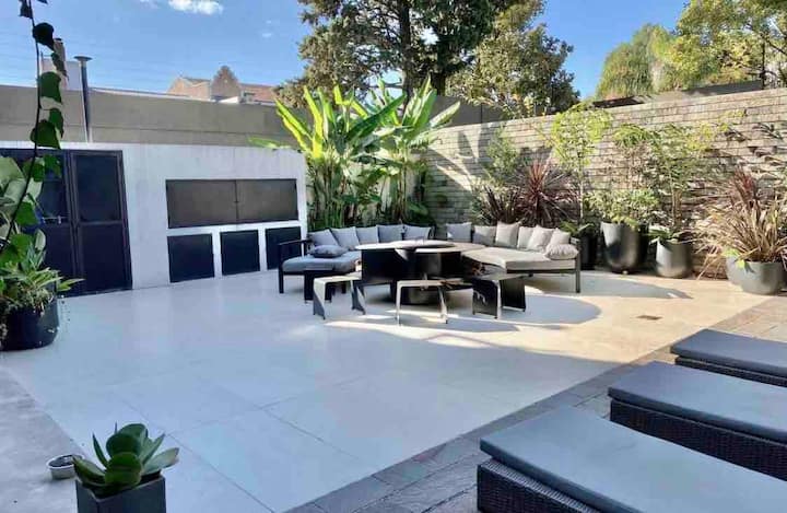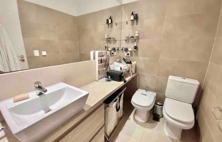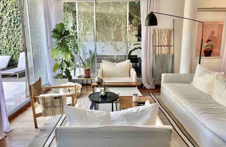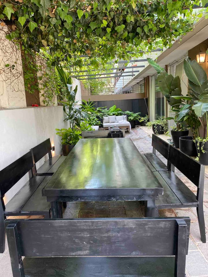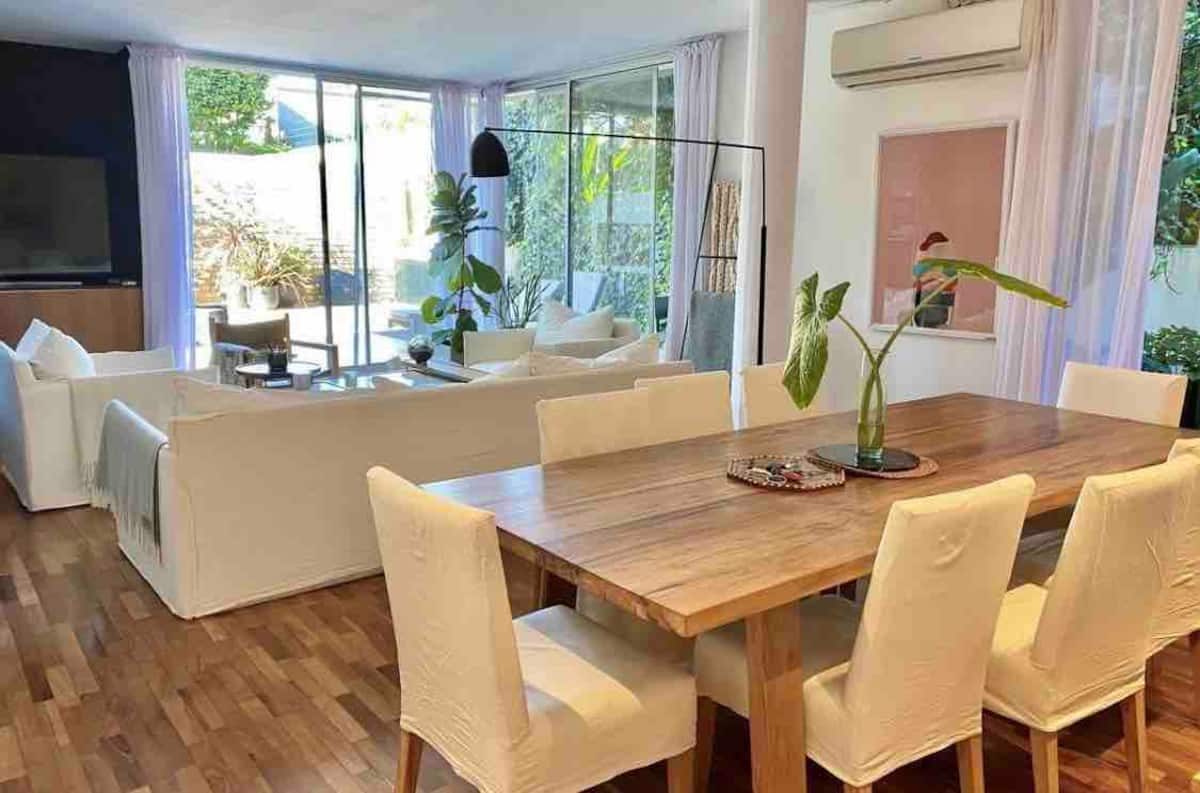 Departamento de 1 dormitorio en La Lucila, en un edificio sobre Av. Del Libertador. Tiene ventana de piso a techo con acceso al patio. El edificio cuenta con pileta. El patio tiene parrilla, ducha y hogar. El alquiler incluye restricción de fiestas y eventos con música alta; el incumplimiento puede derivar en rescisión.