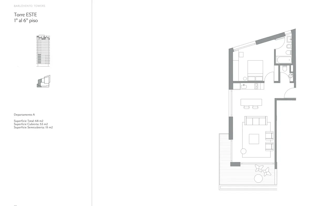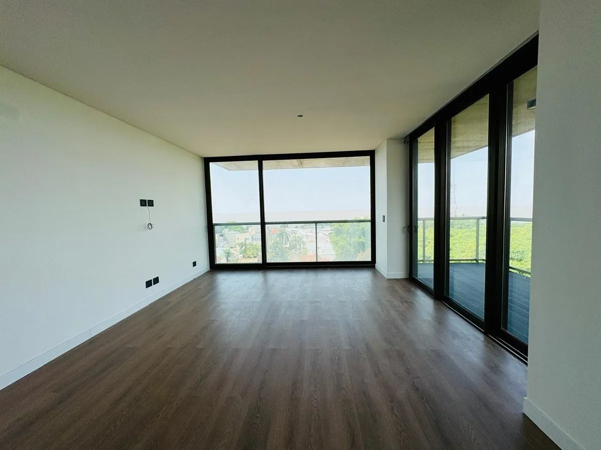 Departamento de 2 ambientes de la Torre Este en Barlovento Towers, con vista al río. Living comedor con balcón aterrazado en “L”, cocina integrada con isla y espacio para lavaropas, lavavajillas y mueble panelable para heladera. Toilette y dormitorio con placares y escritorio, con baño completo en suite. Cochera cubierta en el primer subsuelo, calefacción por losa radiante. El edificio cuenta con pileta en cada torre, SUM, sauna, solarium, gimnasio y un espacio de co-working con oficinas y sala