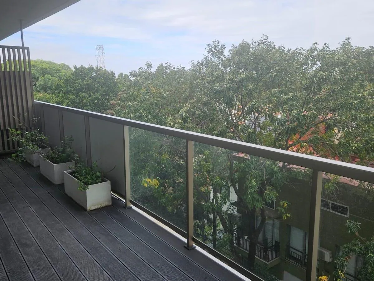 Departamento de 2 ambientes en La Lucila, en Torre Barlovento, Torre oeste, semipiso 4, Depto A, en el 3er subsuelo. Cuenta con 1 dormitorio y living con balcón aterrazado con vista a la ciudad. Cocina integrada equipada con horno eléctrico, anafe vitrocerámico y mesada de silestone, con conexiones para lavarropas y lavavajillas. Incluye 1 cochera cubierta. Tiene piso de madera tipo click spc, calefacción por piso radiante con 4 termostatos independientes, aberturas de PVC con DVH (doble vidrio