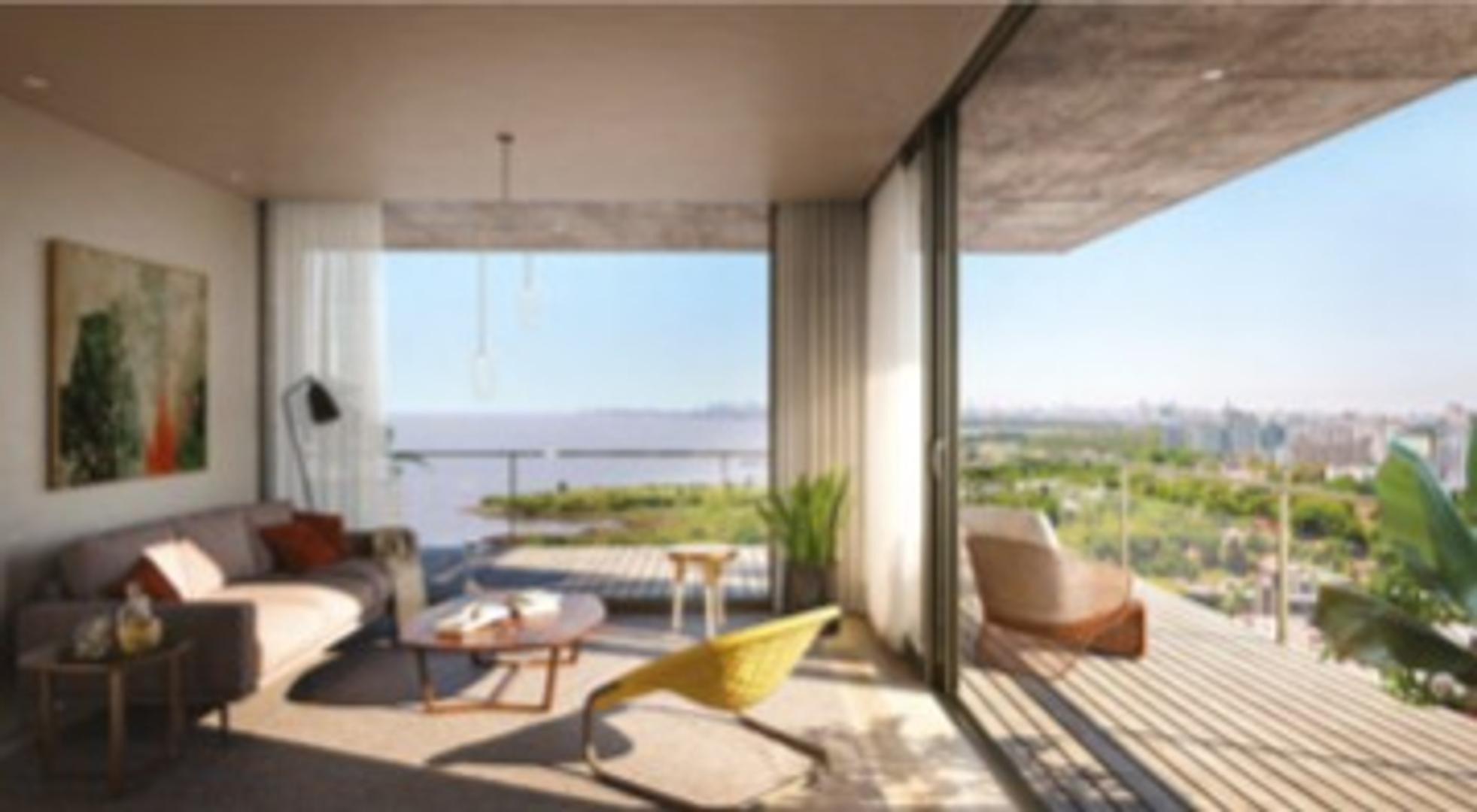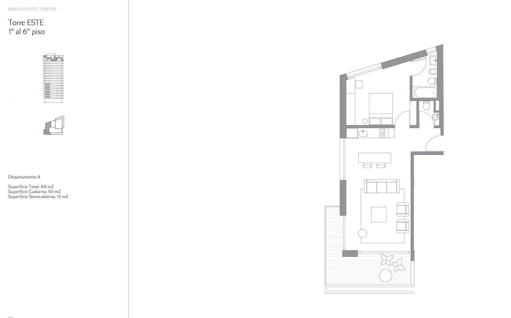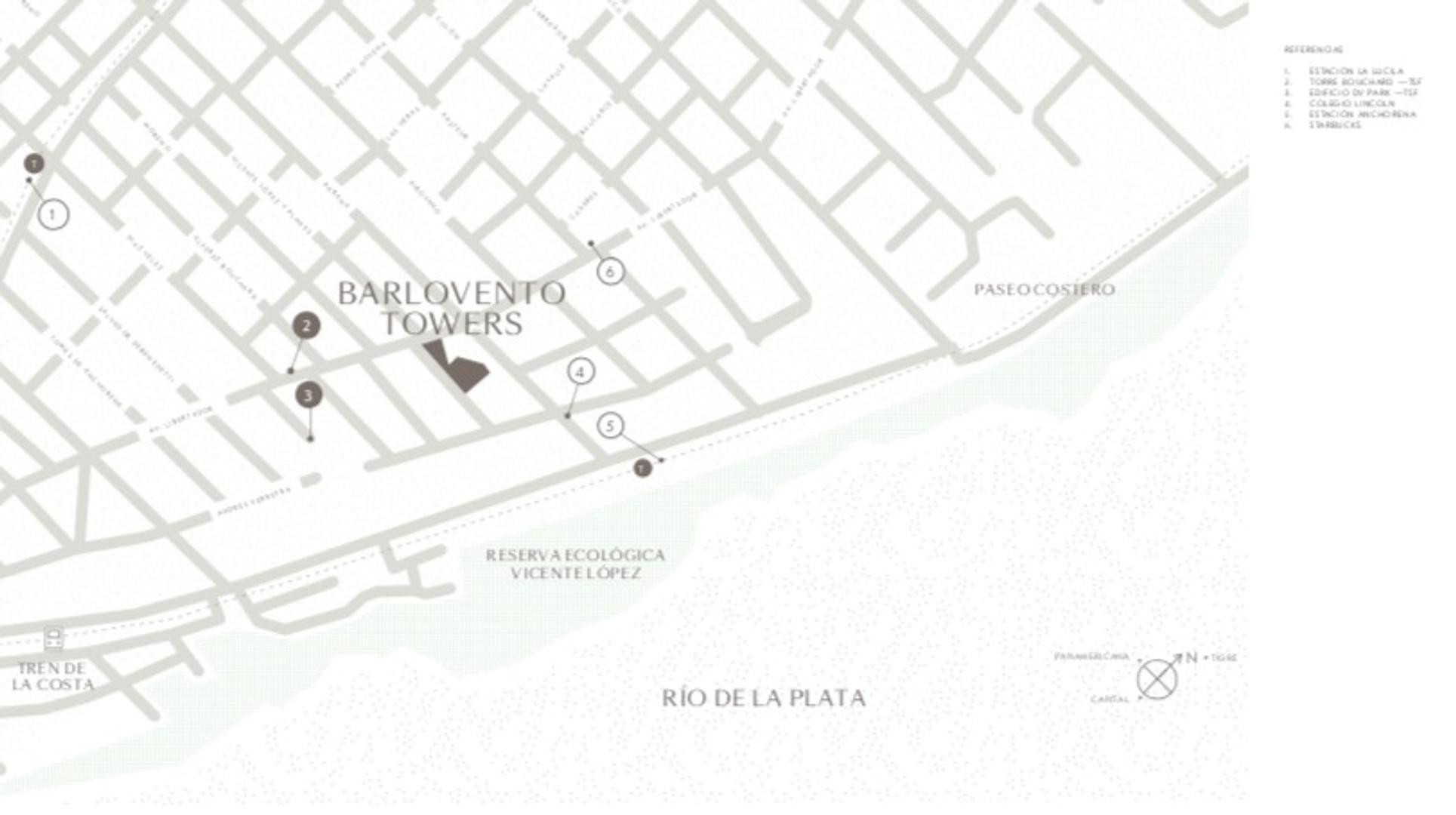 Departamento de 2 ambientes en La Lucila, Torre Este de Barlovento Towers. Unidad con balcón aterrazado y cocina integrada con isla, con espacio para lavaropas y lavavajillas, y mueble panelable para heladera. Incluye toilette, dormitorio con placares y escritorio, baño completo en suite y cochera cubierta en el primer subsuelo. El edificio cuenta con pileta, SUM, sauna, solarium, gimnasio y co-working con oficinas y sala de reuniones. Tiene carpinterías con doble vidriado hermético (DVH) y alar