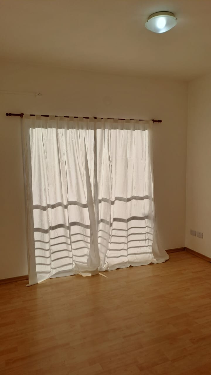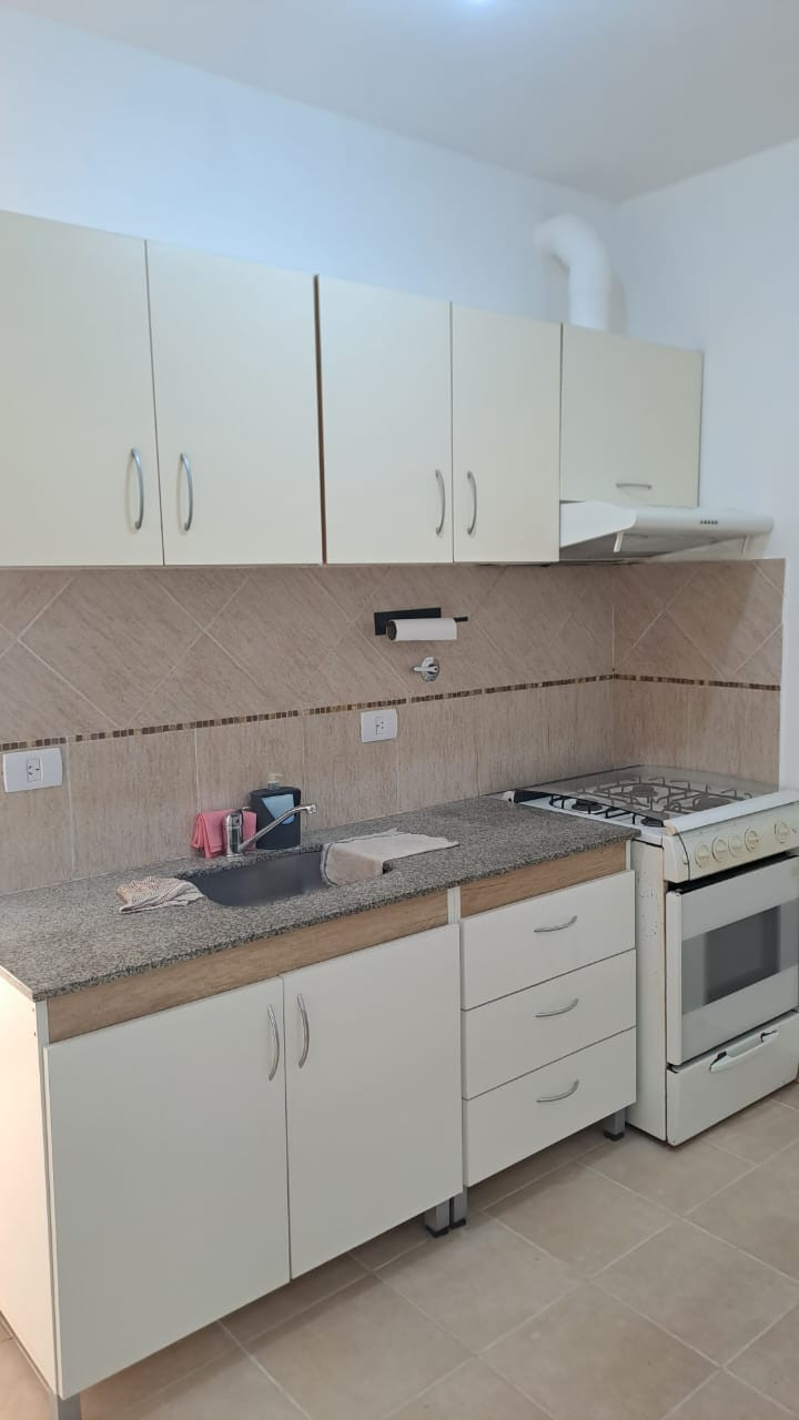 Departamento de 2 ambientes con 1 dormitorio, balcón al contrafrente y vestidor. Cocina comedor con barra desayunadora, alacena y bajo mesada con artefacto de cocina. Baño completo con ducha, inodoro, bidet, vanitory y espejo. Cochera opcional según disponibilidad; se aceptan mascotas (gato o perro, 1 solo, tamaño máximo caniche).