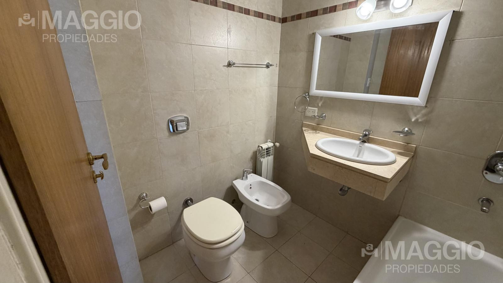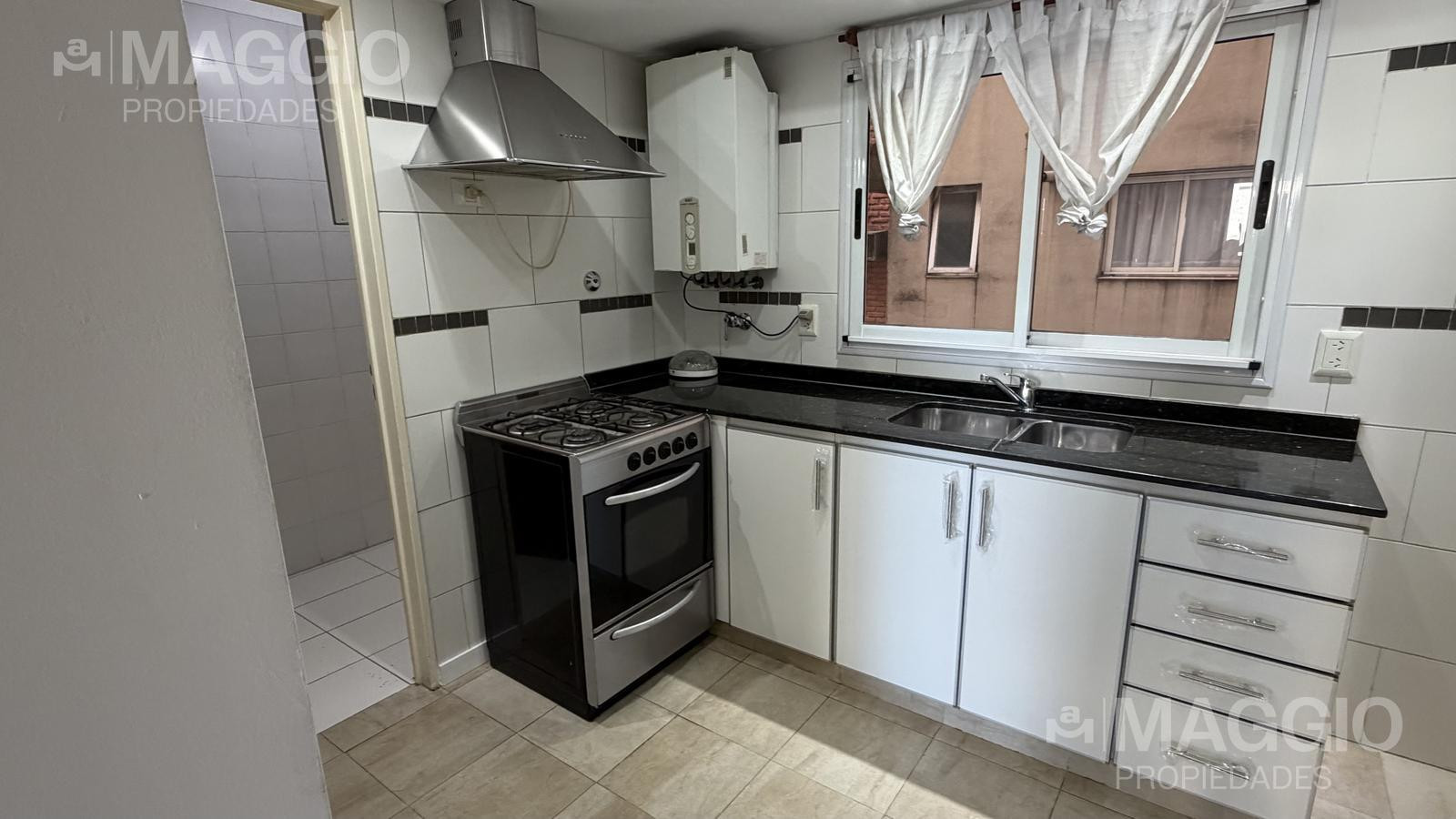 Departamento de 2 ambientes en Ramos Mejía Centro, con 1 dormitorio y 1 baño completo. Tiene living-comedor con ventanal, balcón aterrazado al frente, cocina separada con artefacto de cocina y muebles bajo mesada, y lavadero independiente. El edificio cuenta con SUM, pileta al descubierto y seguridad 24 h, en un complejo de 2 edificios. Contrato por 24 meses con ajuste trimestral por ICL; no se permiten animales.