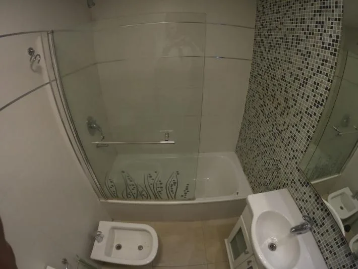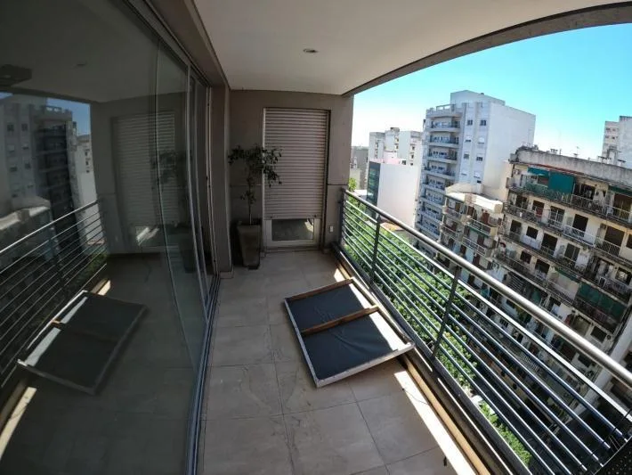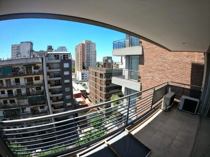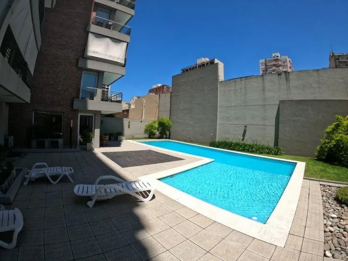 Departamento de 2 ambientes de edificio con salón de fiestas, gimnasio, pileta y seguridad. Al frente, con balcón sem i cubierto aterrazado, amplio living comedor, baño completo y cocina separada con horno y anafe eléctrico. Dormitorio con piso flotante, placard con interiores y frente espejado, con aire acondicionado y calefacción por radiadores en todos los ambientes. Cuenta con 2 ascensores. Requisitos a pedido del propietario: garantía propietaria familiar directa y demostración de ingresos;