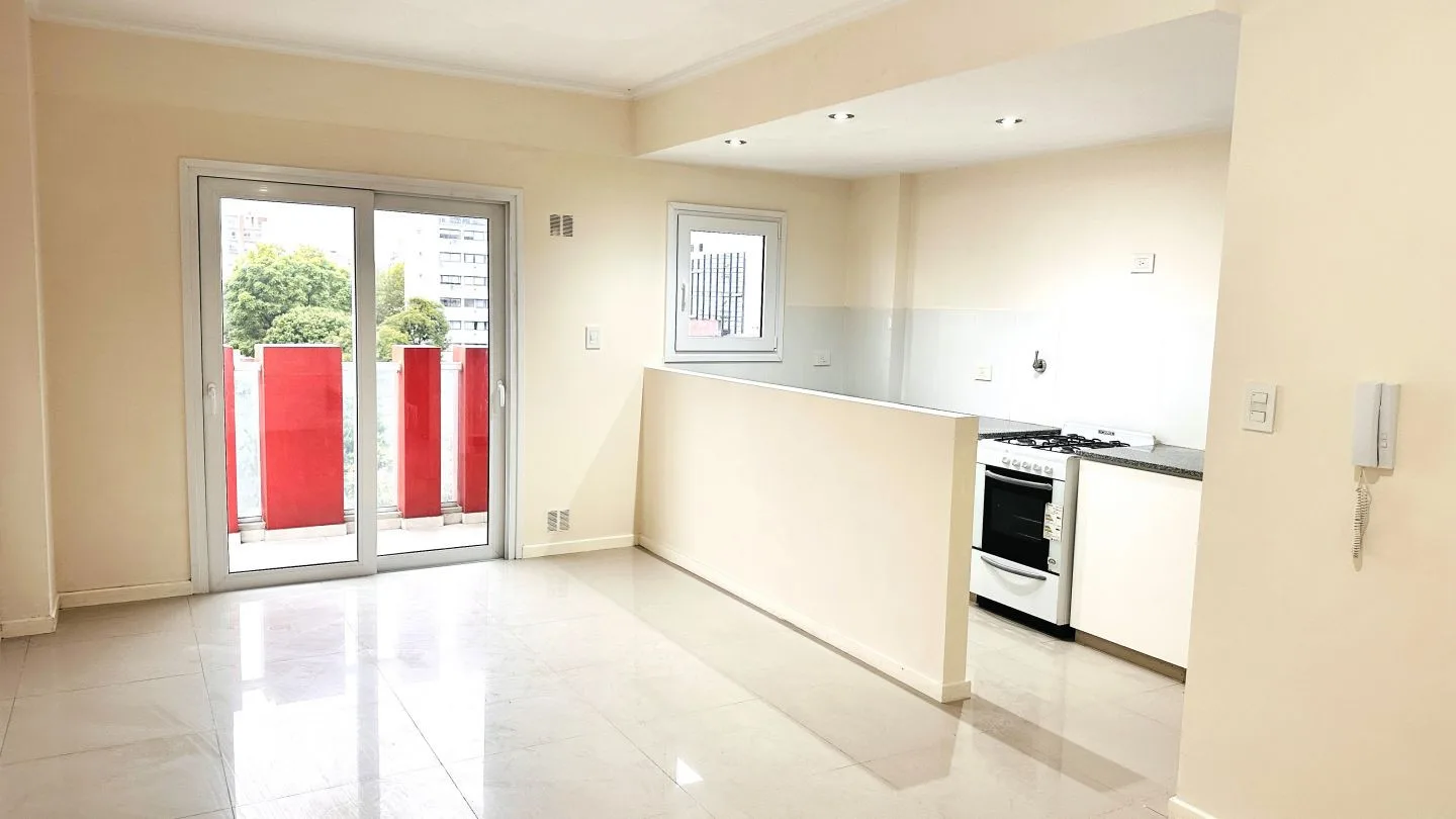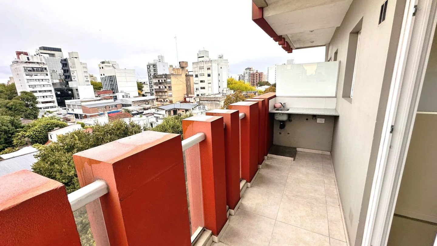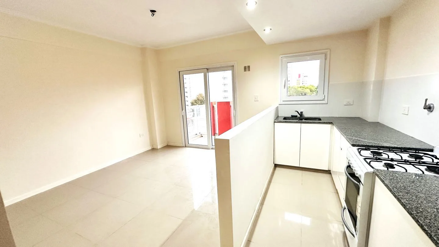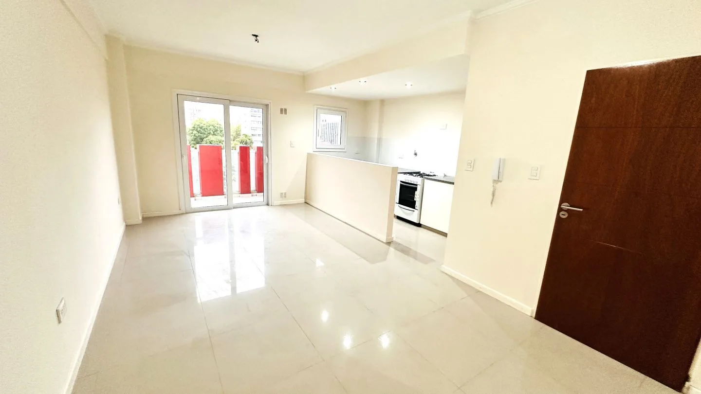 Departamento de 2 ambientes al frente con balcón en La Plata. Cuenta con 1 dormitorio con placard, estar comedor, cocina semi integrada con muebles bajo mesada y baño completo. Incluye aberturas de PVC con DVH, pisos de porcelanato pulido y flotantes en el dormitorio, aire acondicionado frío/calor en el living comedor y preinstalación para otro equipo en el dormitorio, calefón e instalación para lavarropas. Expensas ordinarias: $91.000 (marzo 2026); servicios: agua, luz y gas. Primer mes de alqu