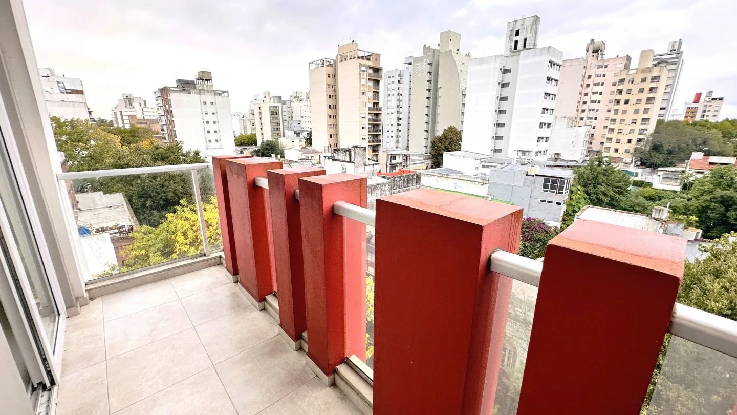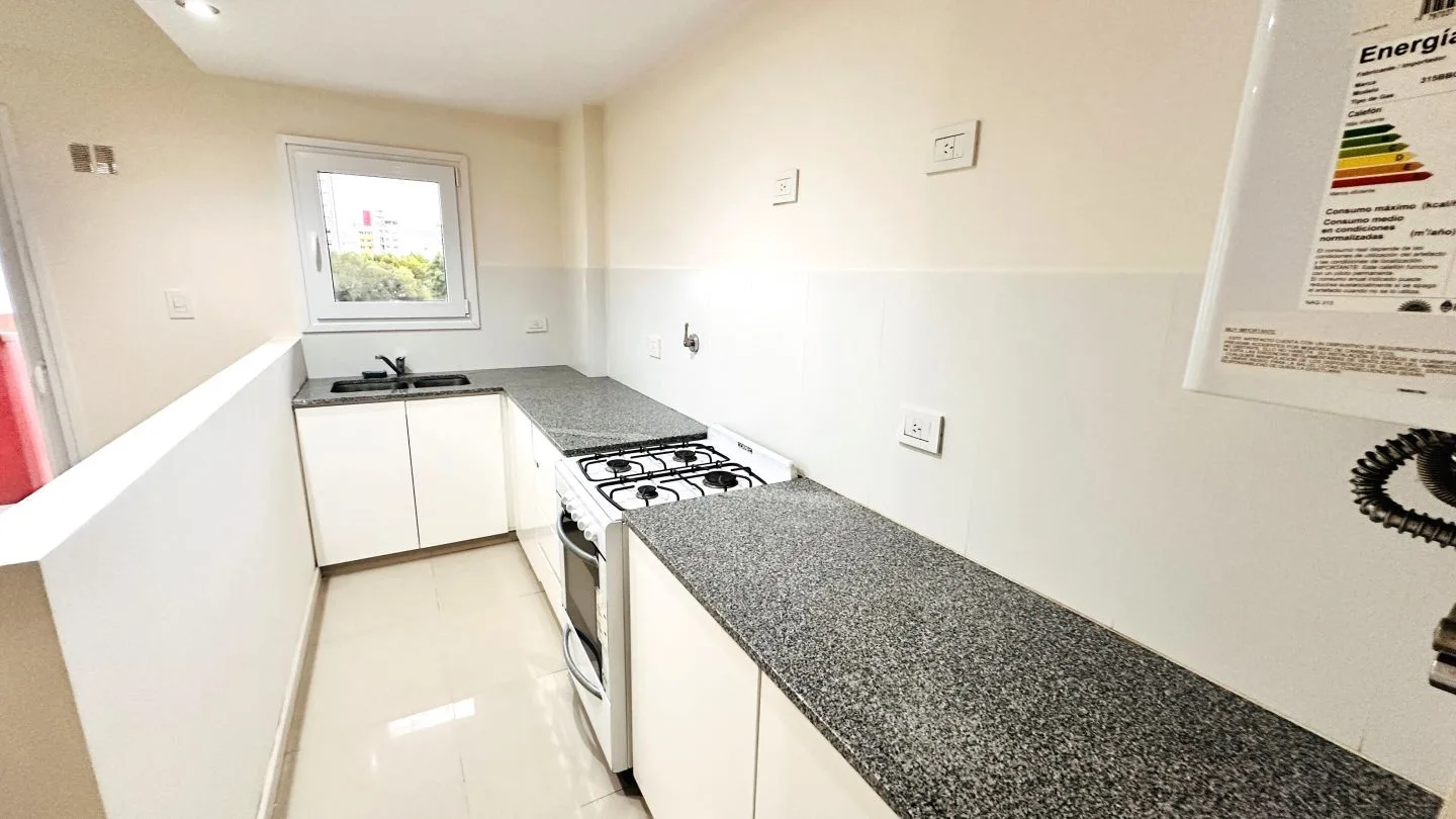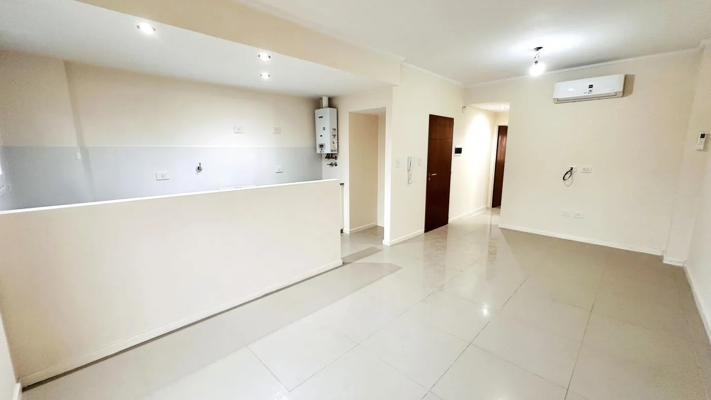 Departamento de 2 ambientes al frente con balcón en La Plata. Cuenta con 1 dormitorio con placard, estar comedor, cocina semi integrada con muebles bajo mesada y baño completo. Incluye aberturas de PVC con DVH, pisos de porcelanato pulido y flotantes en el dormitorio, aire acondicionado frío/calor en el living comedor y preinstalación para otro equipo en el dormitorio, calefón e instalación para lavarropas. Expensas ordinarias: $91.000 (marzo 2026); servicios: agua, luz y gas. Primer mes de alqu