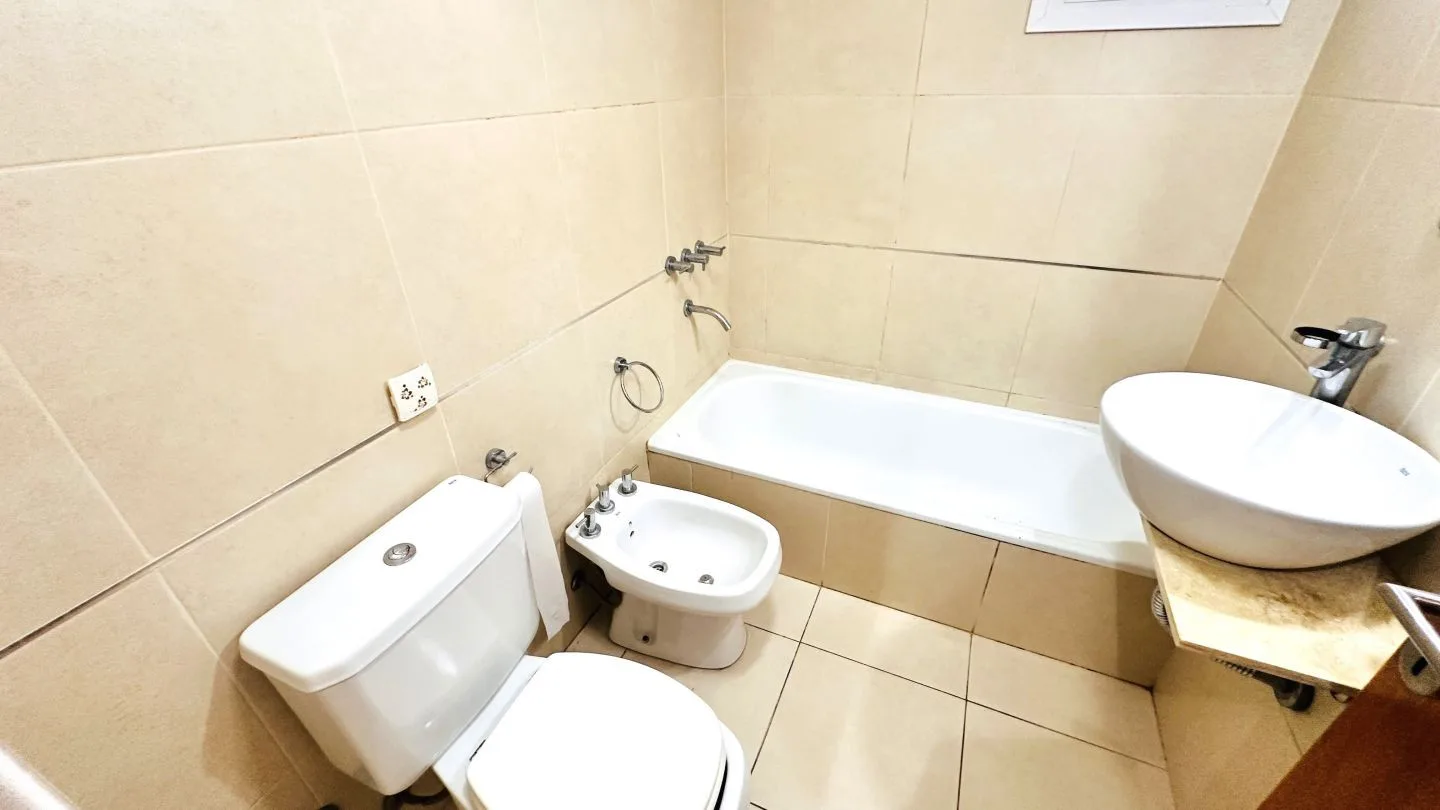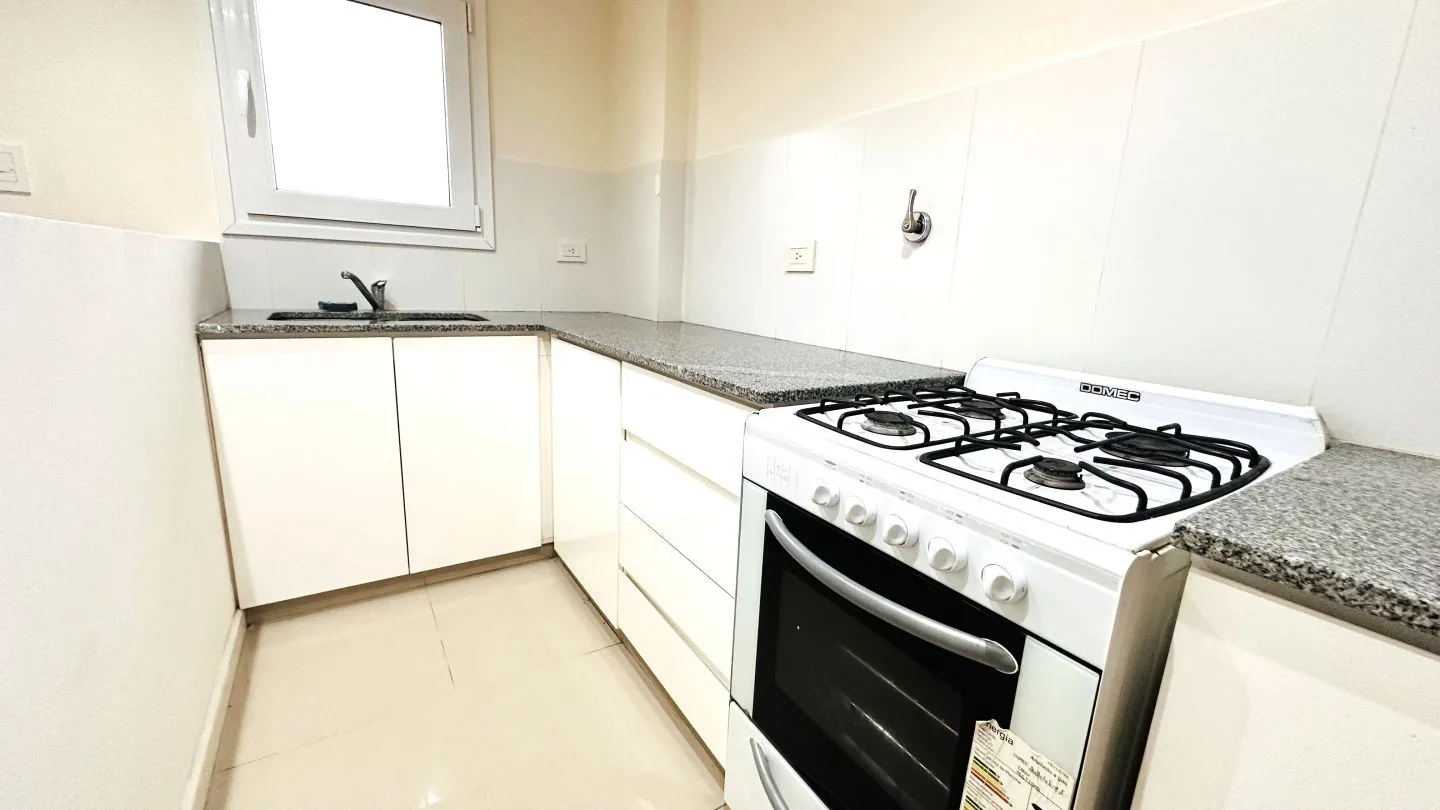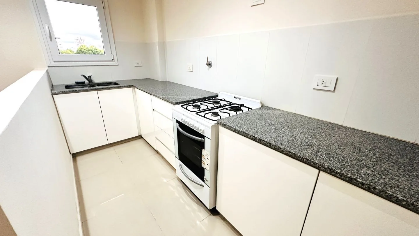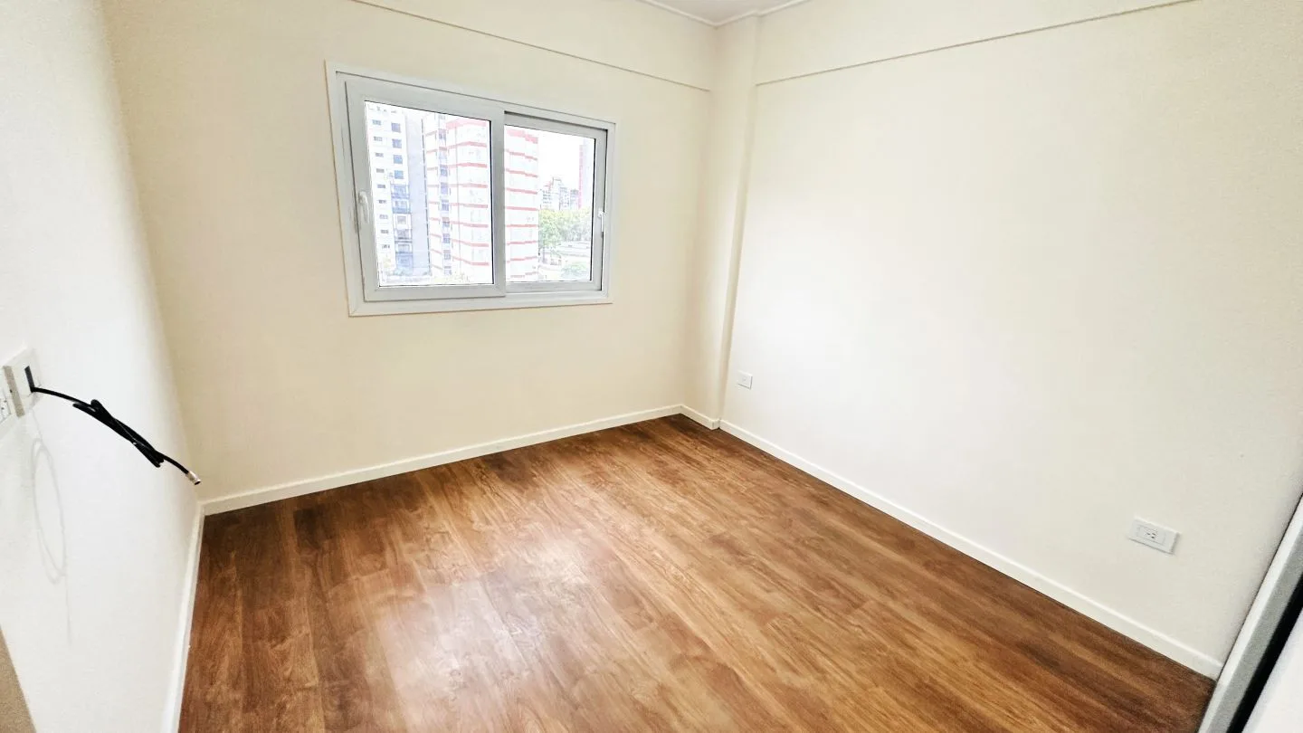 Departamento de 2 ambientes al frente con balcón en La Plata. Cuenta con 1 dormitorio con placard, estar comedor, cocina semi integrada con muebles bajo mesada y baño completo. Incluye aberturas de PVC con DVH, pisos de porcelanato pulido y flotantes en el dormitorio, aire acondicionado frío/calor en el living comedor y preinstalación para otro equipo en el dormitorio, calefón e instalación para lavarropas. Expensas ordinarias: $91.000 (marzo 2026); servicios: agua, luz y gas. Primer mes de alqu