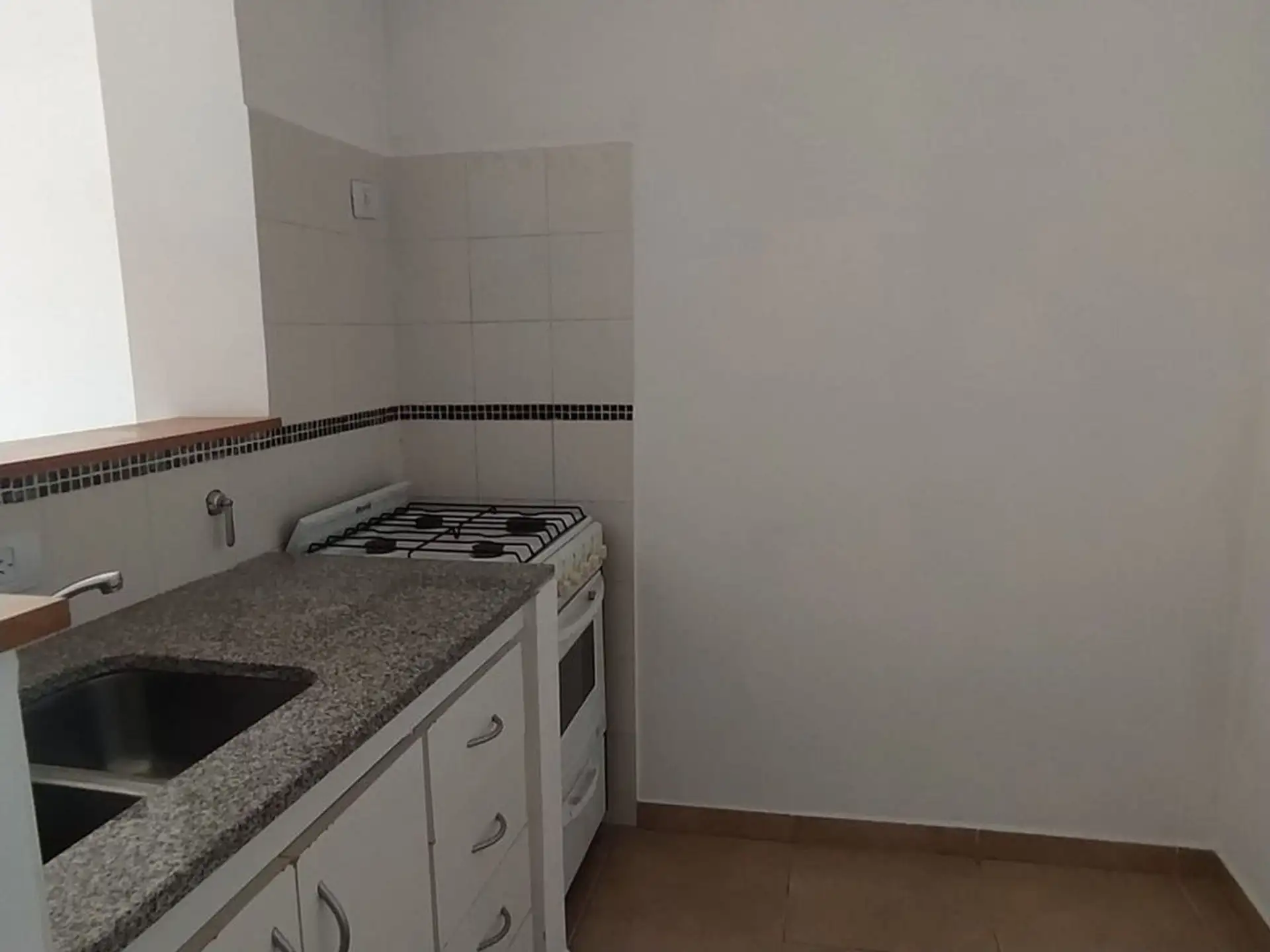 Departamento de 1 dormitorio con cochera, con balcón al frente. Cuenta con cocina separada con barra desayunadora, dormitorio con placard y estufa tiro balanceado.