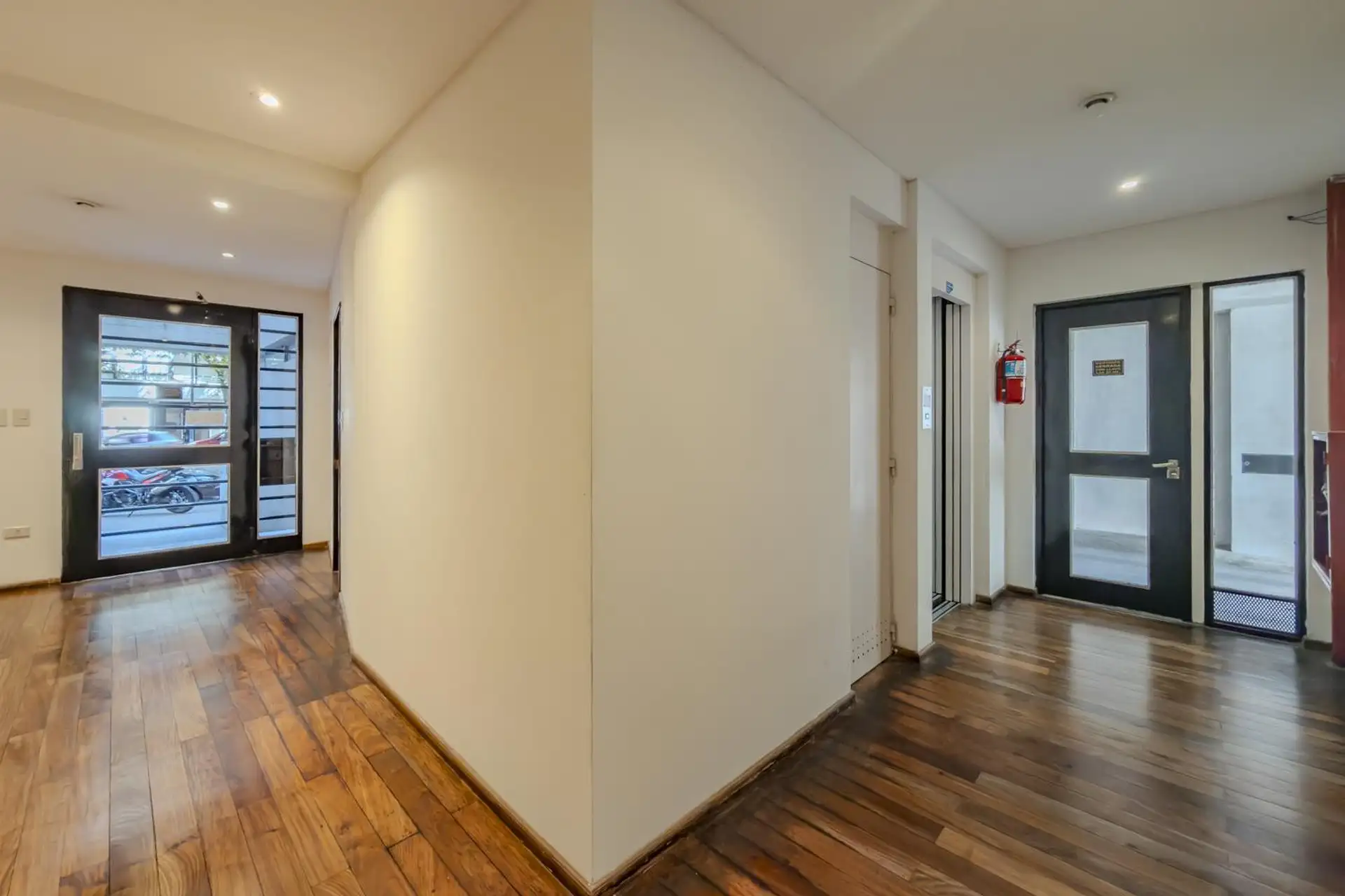 Departamento de 1 dormitorio en alquiler en La Plata, en el 8vo piso (A) al frente. Cocina separada con muebles bajo mesada y alacenas, lavadero integrado, baño completo con bañera y balcón al ambiente principal. Dormitorio con placard empotrado y aire acondicionado frío/calor nuevo, con pisos flotantes de alto tránsito y estufa a gas con tiro balanceado. El edificio tiene terraza de uso común con parrilla y ascensor. Expensas de $94.000 e incluye cochera descubierta (n° 2). Hay 2 unidades por p
