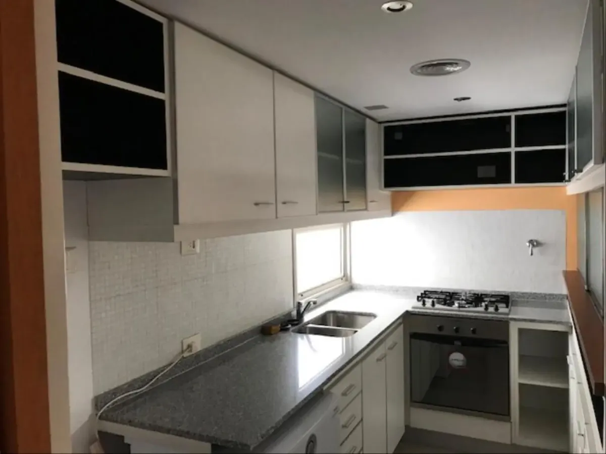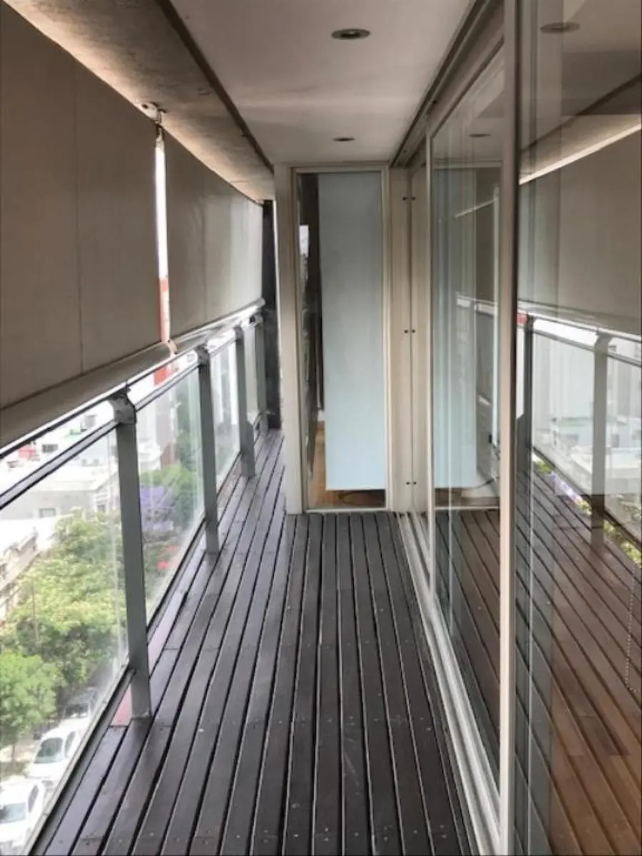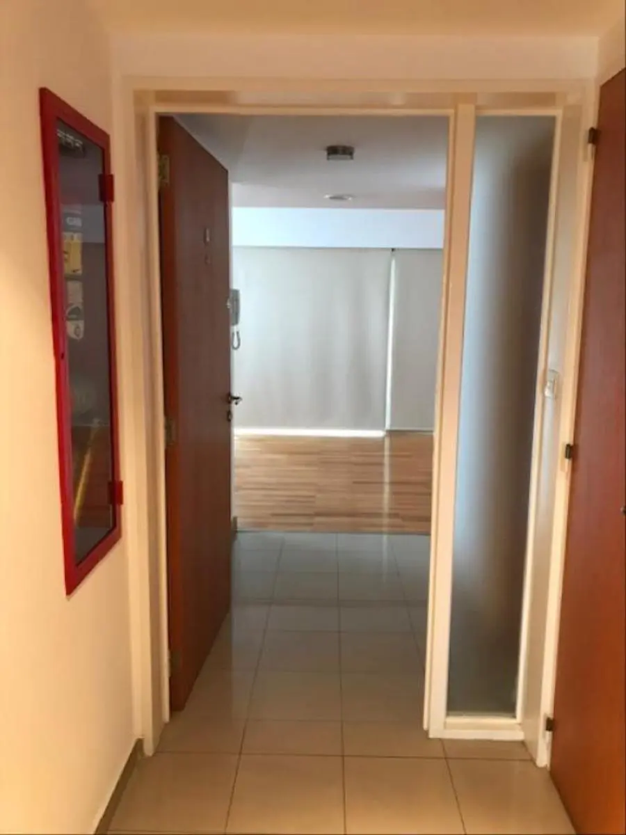 Semipiso de 1 dormitorio con placard al frente, 7° piso por ascensor, con 70 m² cubiertos. Cuenta con cocina separada con muebles bajo y sobre mesada, living-comedor con piso en madera hidrolaqueado y balcón corrido con deck en lapacho; baño completo con doble acceso y lavadero incorporado a la cocina. Tiene calefacción y aire central por aire, lavadero comunitario en la terraza y terraza de uso común con parrilla. Garage cubierto con acceso con control remoto; ABSA incluido en las expensas. Pro