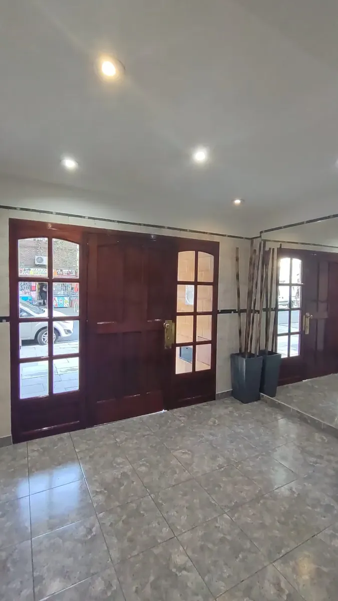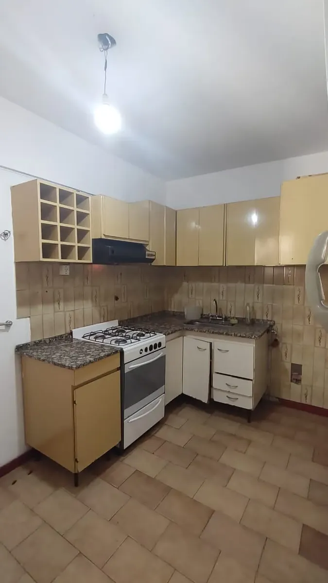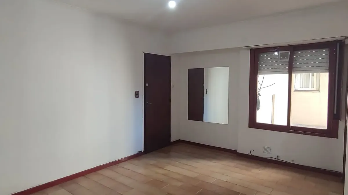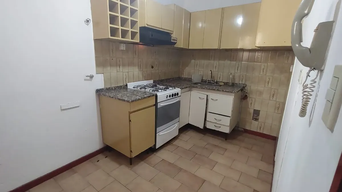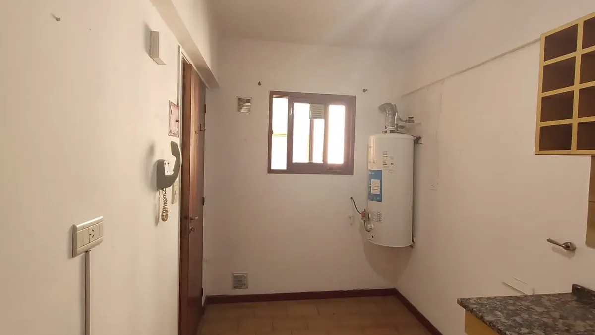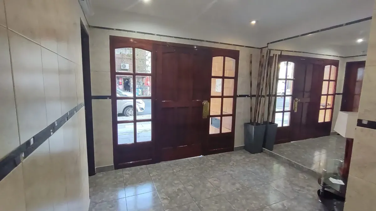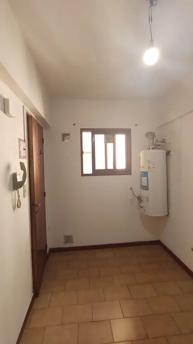 Departamento de 2 ambientes en 2° piso, contrafrente, ubicado en la esquina de Arturo Illia y Pte. Sarmiento, a 3 cuadras de la estación Lanús. Cuenta con living comedor con balcón francés hacia pulmón de manzana y conexión para estufa, cocina independiente con termotanque grande, spar, artefacto de cocina y conexión para lavarropas, pasillo con placard y baño completo con bañera, bidet y botiquín. El dormitorio tiene placard y ventana. El edificio dispone de 2 ascensores y el contrato es por 2