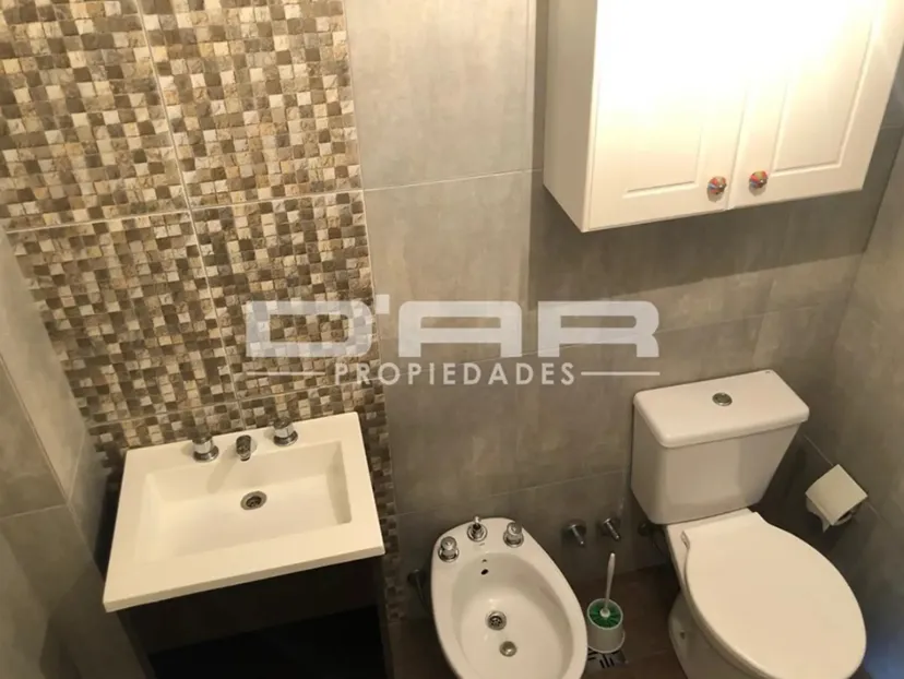 Departamento de 2 ambientes al contrafrente, todo eléctrico. Se ubica en un edificio de 8 pisos, con 4 departamentos por piso, a 10 años de antigüedad. Incluye living comedor con piso flotante, cocina semi integrada con anafe y horno eléctrico, espacio para heladera sin conexión, baño completo con ducha, balcón al contrafrente y dormitorio con placard empotrado.