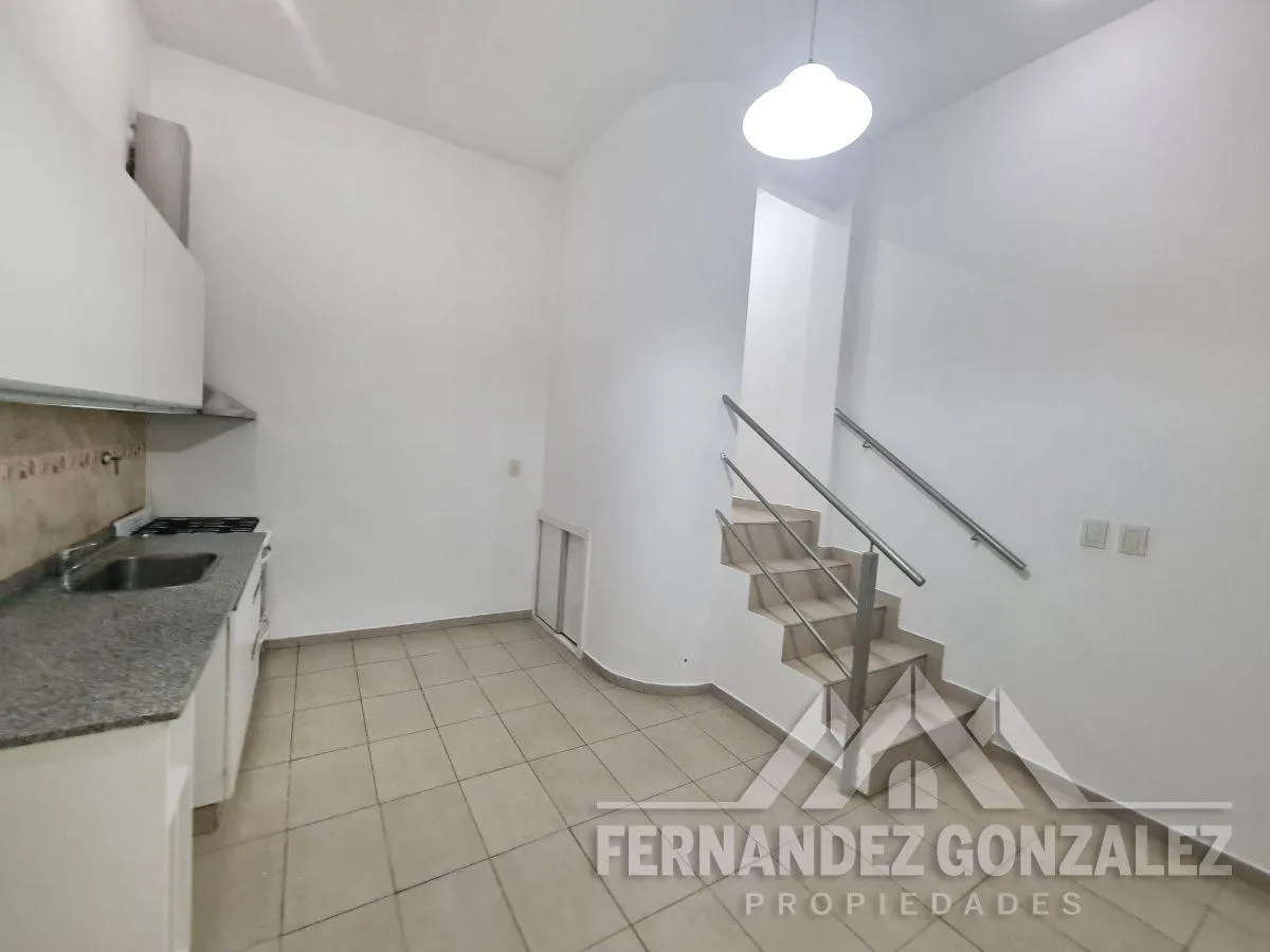 Loft de 2 ambientes con patio en Lomas de Zamora, a 4 cuadras de la estación. Cocina comedor diario de 4,00 x 4,60 con muebles completos, doble bacha con canilla monocomando, horno, extractor purificador de aire y espacio para lavavajilla, con amplia baulera de guardado. Living comedor de 4,00 x 4,00 con estufa tiro balanceado y puerta balcón a un patio de uso propio de 4,40 x 4,00 con pileta de lavado y espacio para lavarropas semicubierto; en entrepiso hay un dormitorio de 4,00 x 3,40 con gran