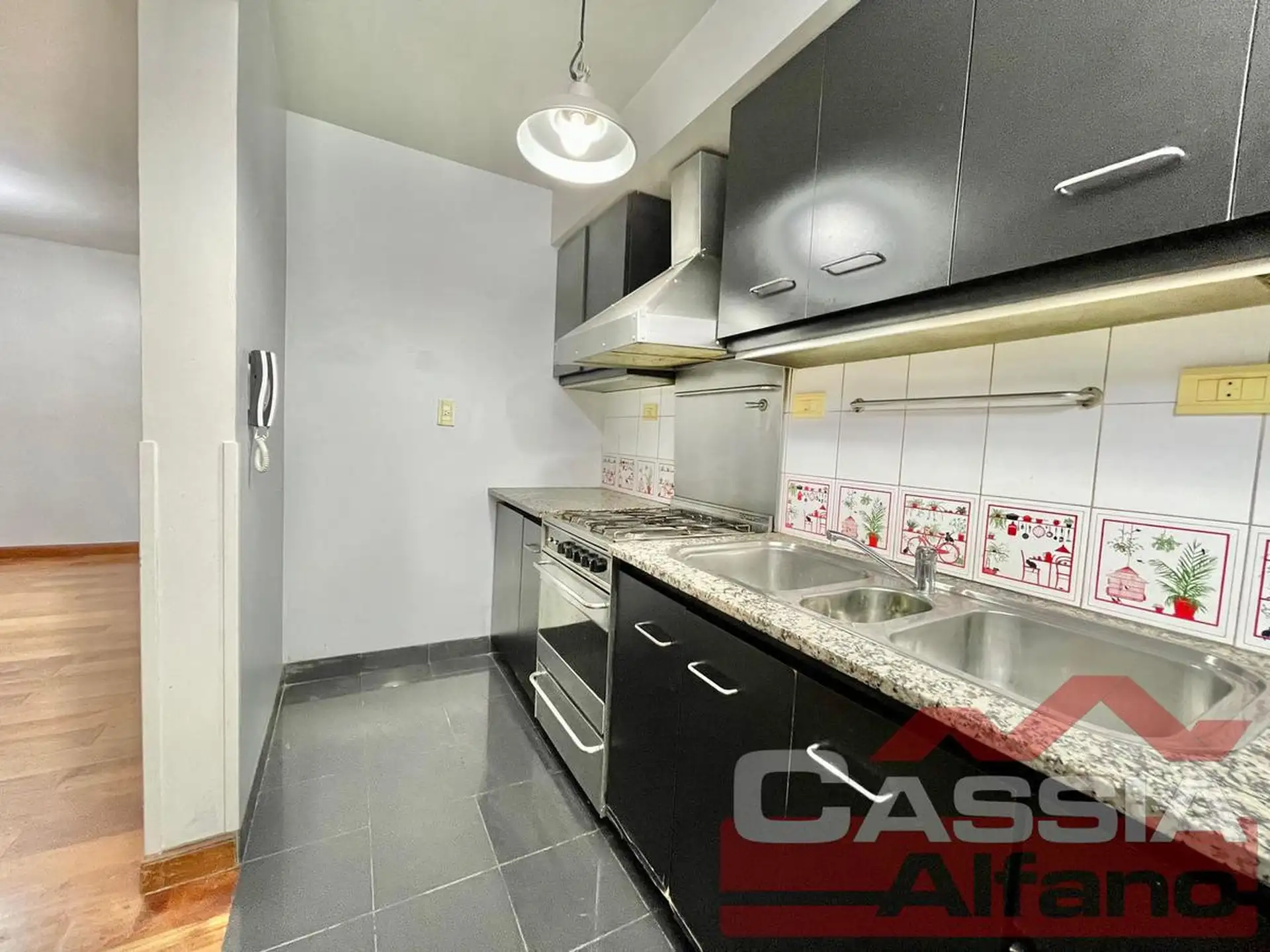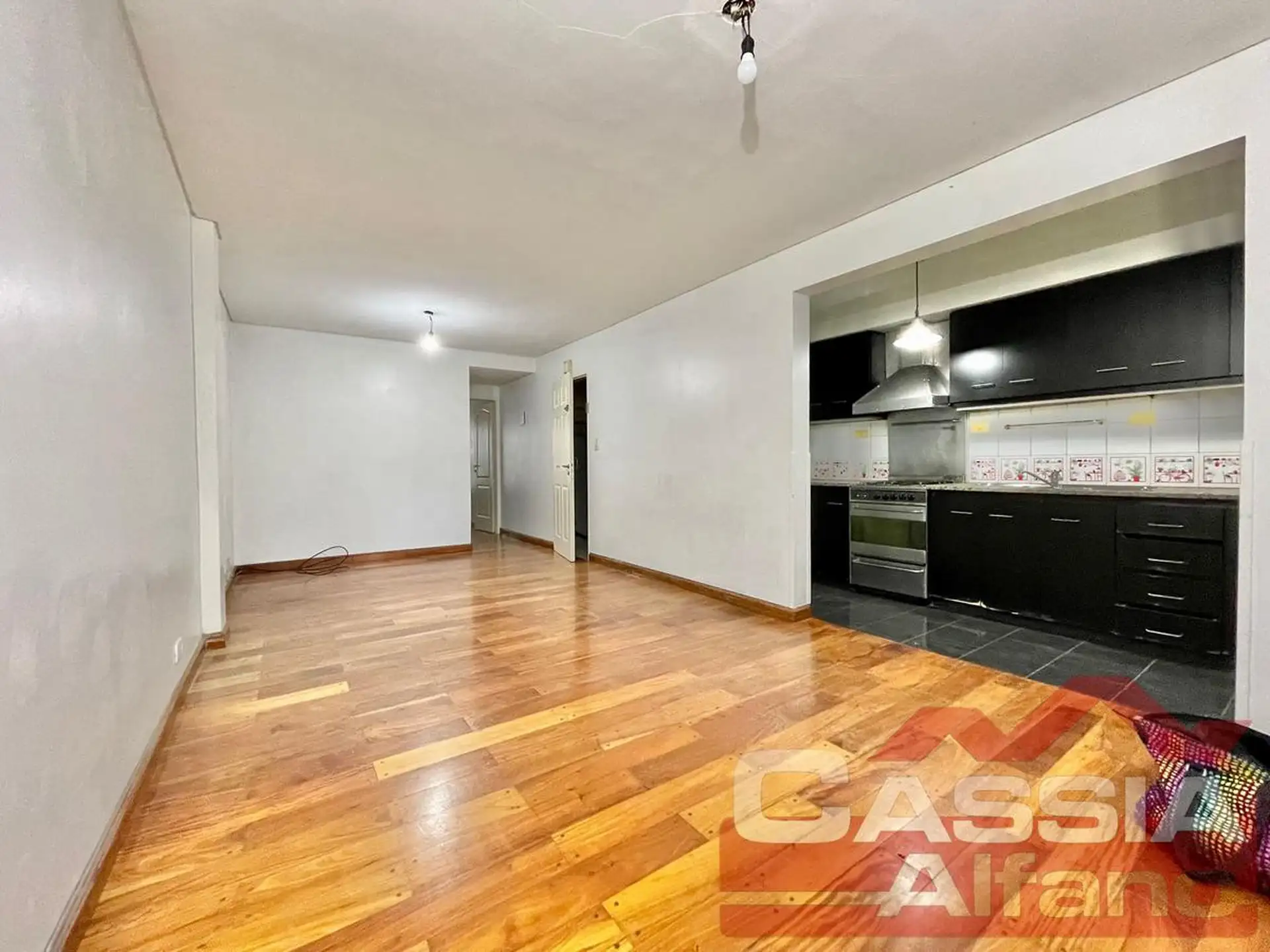 Departamento semipiso de 2 ambientes en segundo piso, 48 m² aprox., con balcón al frente. Cuenta con estar-comedor con pisos de madera tarugada laqueada, aire acondicionado, 1 dormitorio con placard y baño completo con ducha, bidet, vanitory y sanitarios completos. La cocina tiene amoblamiento bajo y sobre mesada, con lavadero integrado y termo tanque a gas natural; calefacción por estufas de tiro balanceado. Edificio con ascensor y bajas expensas. No acepta mascotas. Alquiler inicial $600.000,