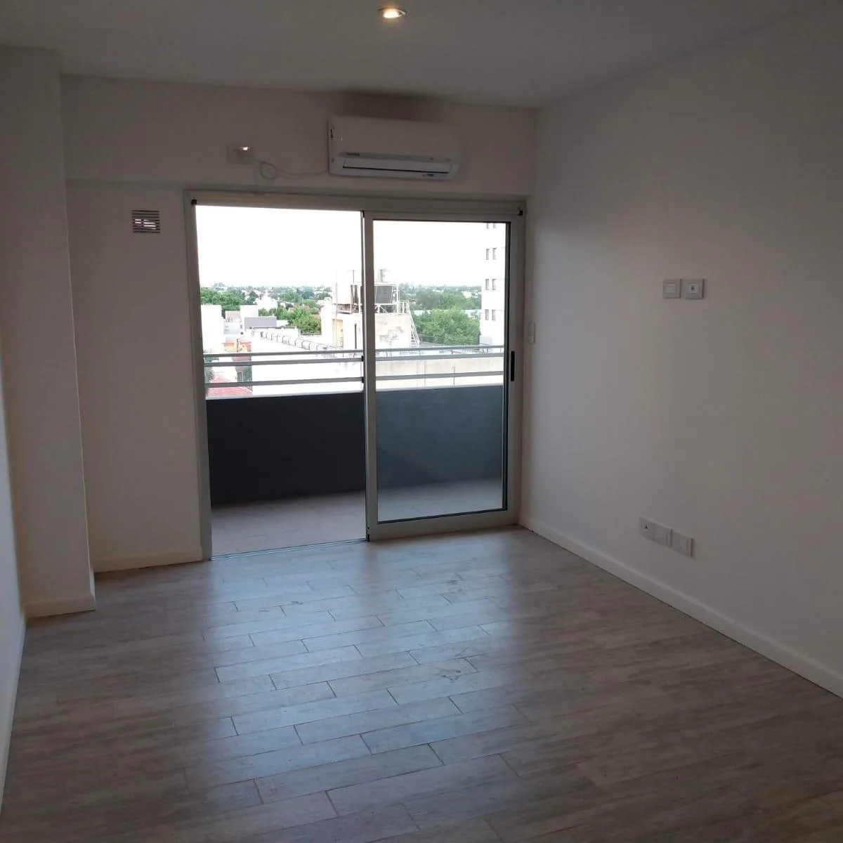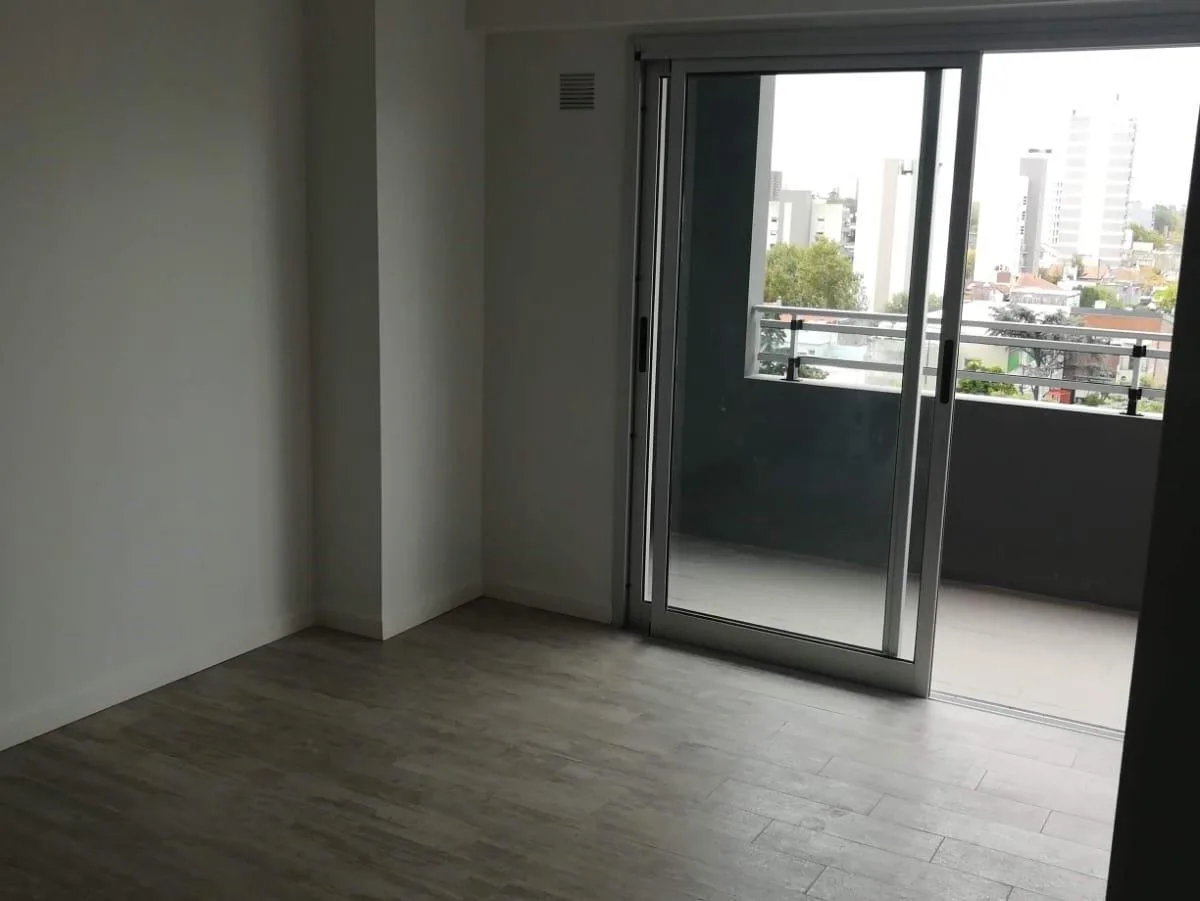Departamento de 2 ambientes al frente, con balcón y orientación norte. Living-comedor con aire acondicionado frío-calor, cocina con muebles bajo y sobre mesada y artefacto a gas. Dormitorio con placard con interiores y baño completo con bañera. La unidad se alquila con cochera cubierta. El edificio cuenta con SUM y piscina.