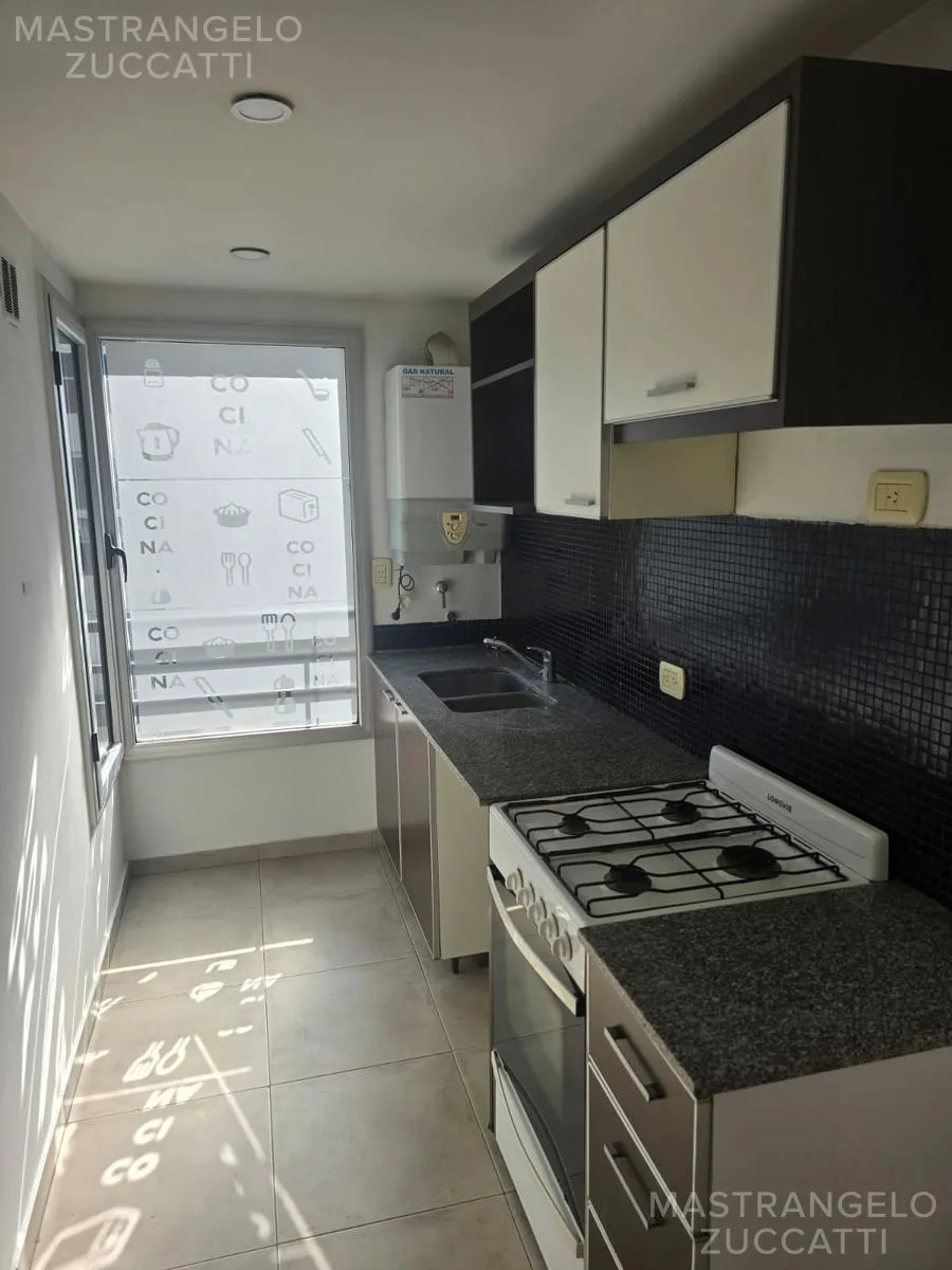Departamento de 2 ambientes. Cuenta con living-comedor con piso flotante, cocina completa con muebles altos y bajos, dormitorio con placard y baño completo con bañera. Alquiler por 24 meses con aumento trimestral según IPC, más tasa municipal y expensas. Honorarios con IVA.