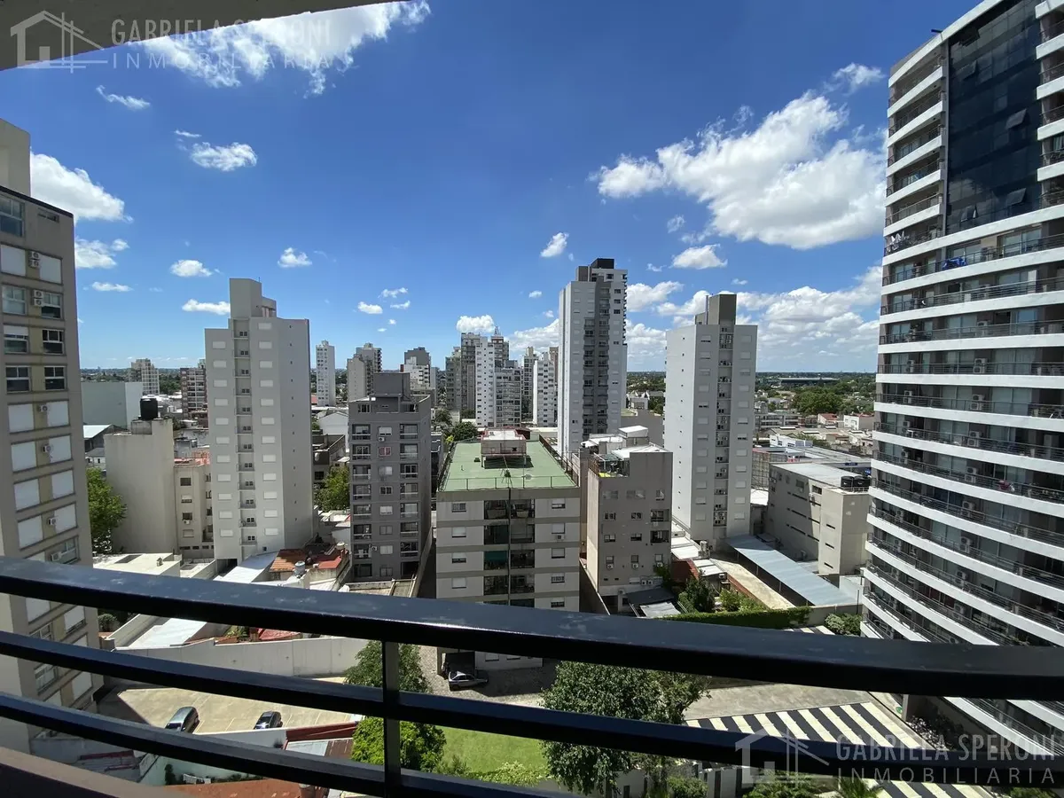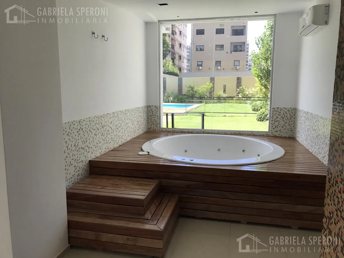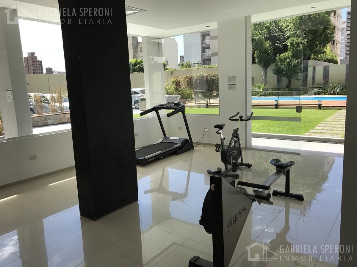 Departamento de 2 ambientes de 1 dormitorio, con equipamiento y muebles, ubicado en Torre Norte del edificio “Les Bruyeres” en Banfield. Living comedor con pisos flotantes y cocina integrada con muebles bajo y alto mesada, grifería monocomando, mesada de granito y espacio para lavarropas; dormitorio con placard con interiores, pisos flotantes y salida a balcón. Baño completo con bañera, calefacción por radiadores y agua caliente provista por caldera dual. El edificio cuenta con solarium, gimnasi