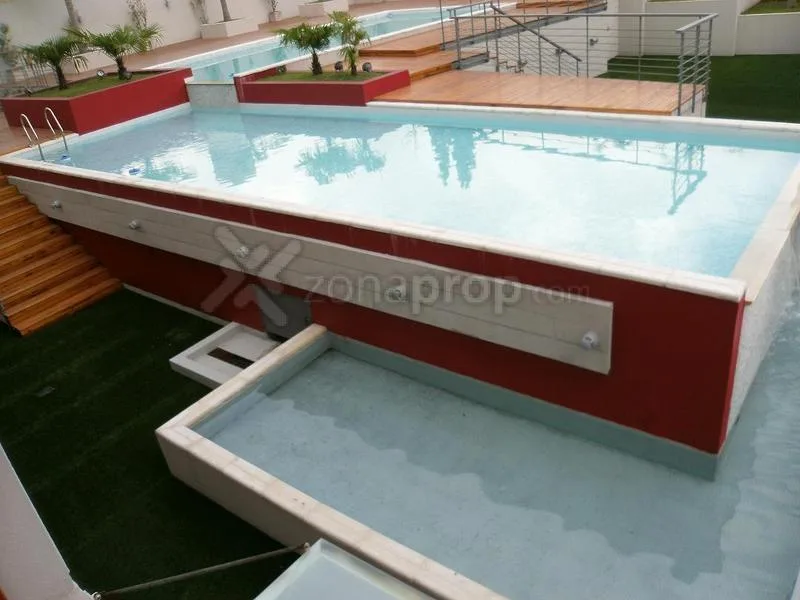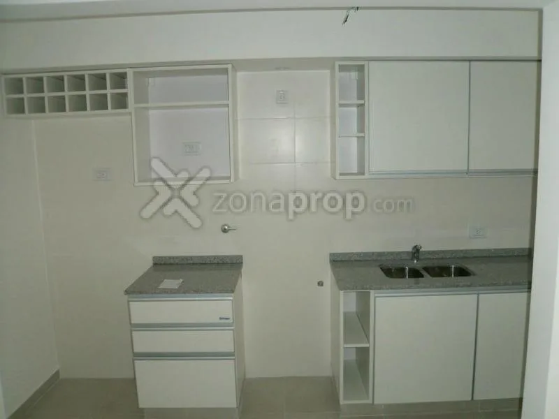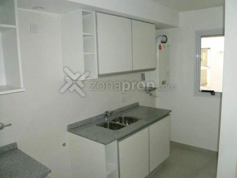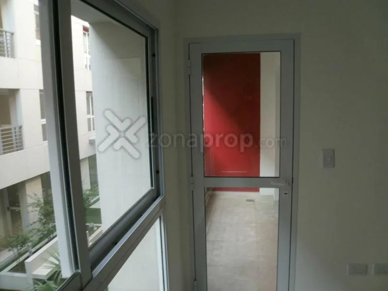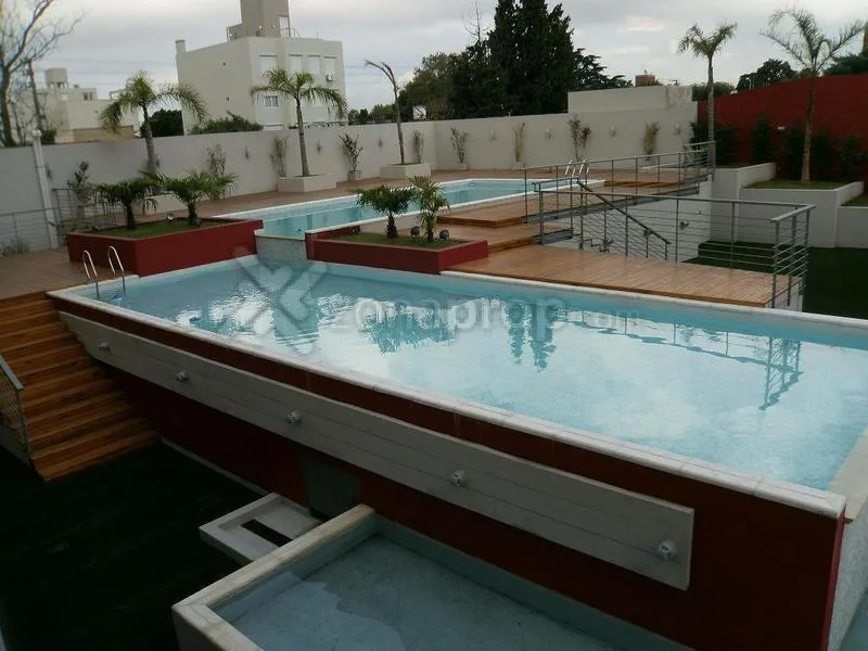 Two-room apartment in Lomas de Zamora with 1 bedroom, balcony access, and (assigned) parking space. It has a fitted kitchen with base and overhead cabinets, an integrated laundry area, living-dining with porcelain tile floors, modern full bathroom with vanity, built-in closets, radiator heating, and pre-installation for a split air-conditioning system. The complex has 24-hour security, three swimming pools with solarium, a fully equipped gym, a communal room for up to 60 people with air conditio