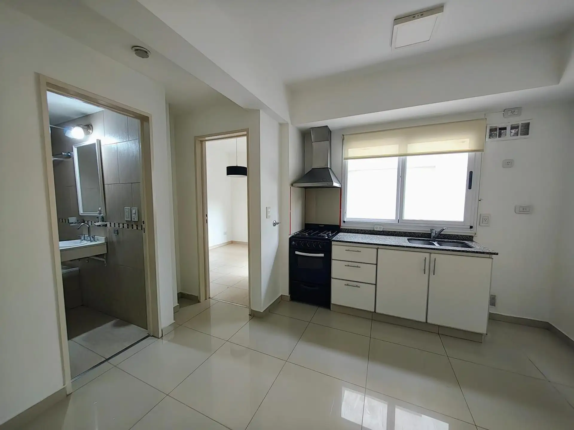 Departamento de 2 ambientes de 1 dormitorio ubicado en el 1er piso, con vista al pulmón de edificio. Cocina integrada en el living comedor, pisos porcelanatto y cocina con extractor. Cuenta con dormitorio con placard, espacio de lavadero con termotanque eléctrico y conexión para lavarropas, baño completo con bañadera, calefacción por estufa a gas y 1 aire acondicionado instalado en el dormitorio. El edificio tiene PB y 2 pisos, ascensor y terraza de uso común. Alquiler inicial de $550.000, plazo