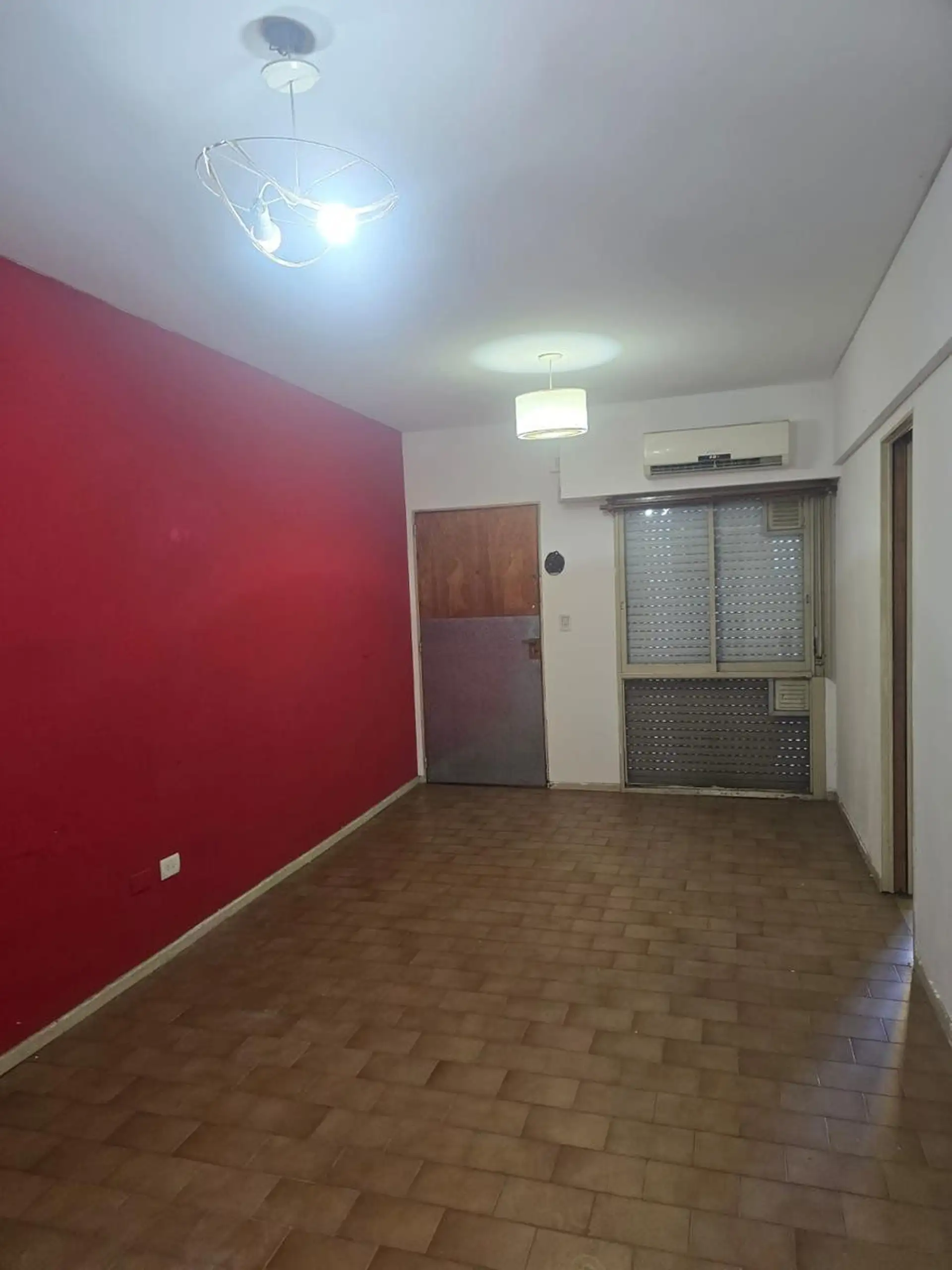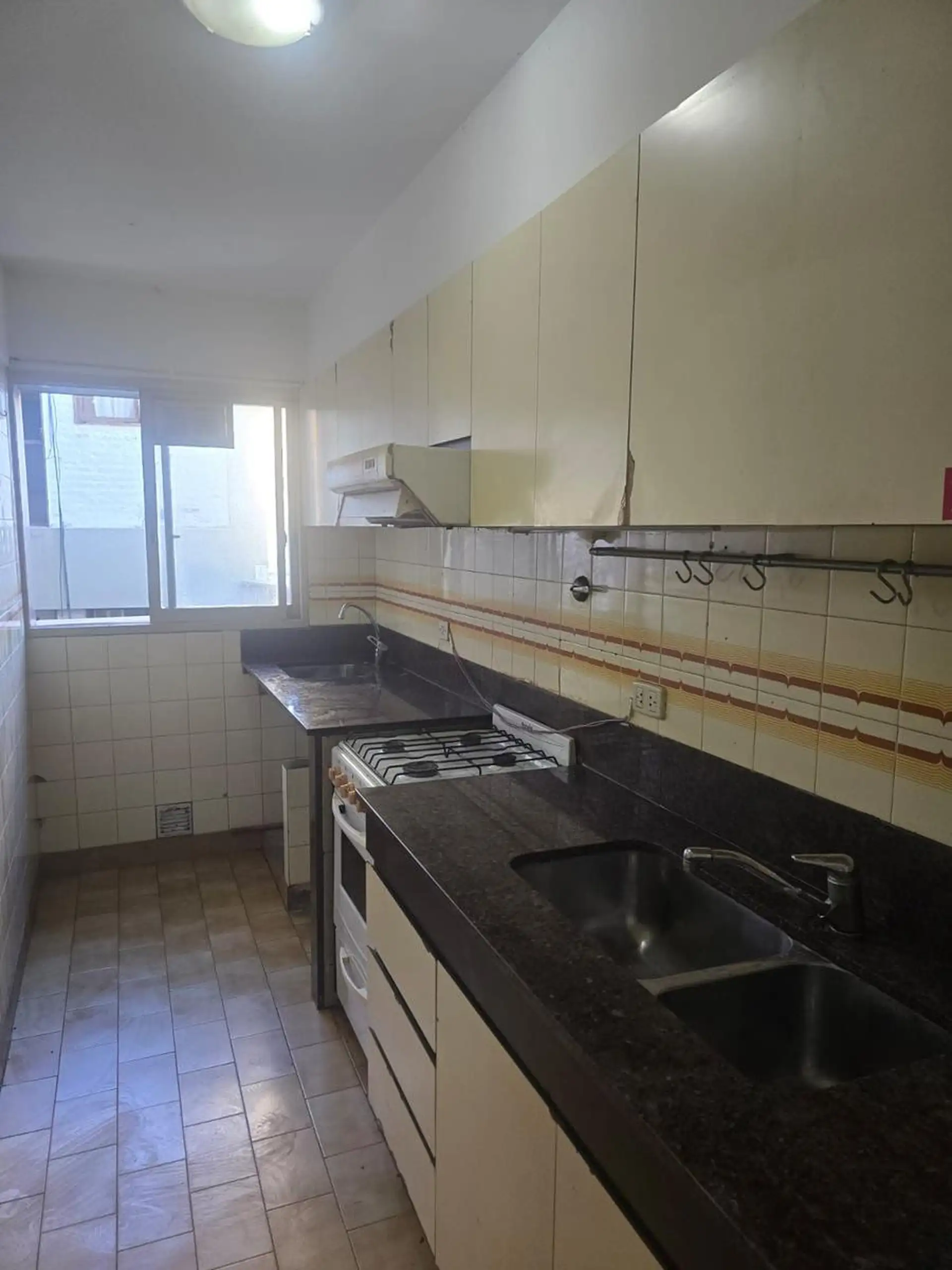 Departamento de 2 ambientes, 1 dormitorio, con living comedor al frente y pisos cerámicos. Cuenta con estufa, equipo de aire acondicionado, cocina con amoblamiento sobre y bajo mesada, instalación para lavarropas y baño completo. El dormitorio tiene pisos cerámicos, placard con interiores y ventilador de techo. Incluye cochera cubierta y espacios de jardín y terraza de uso común. Expensas $58.000 (marzo). Acepta mascota pequeña.