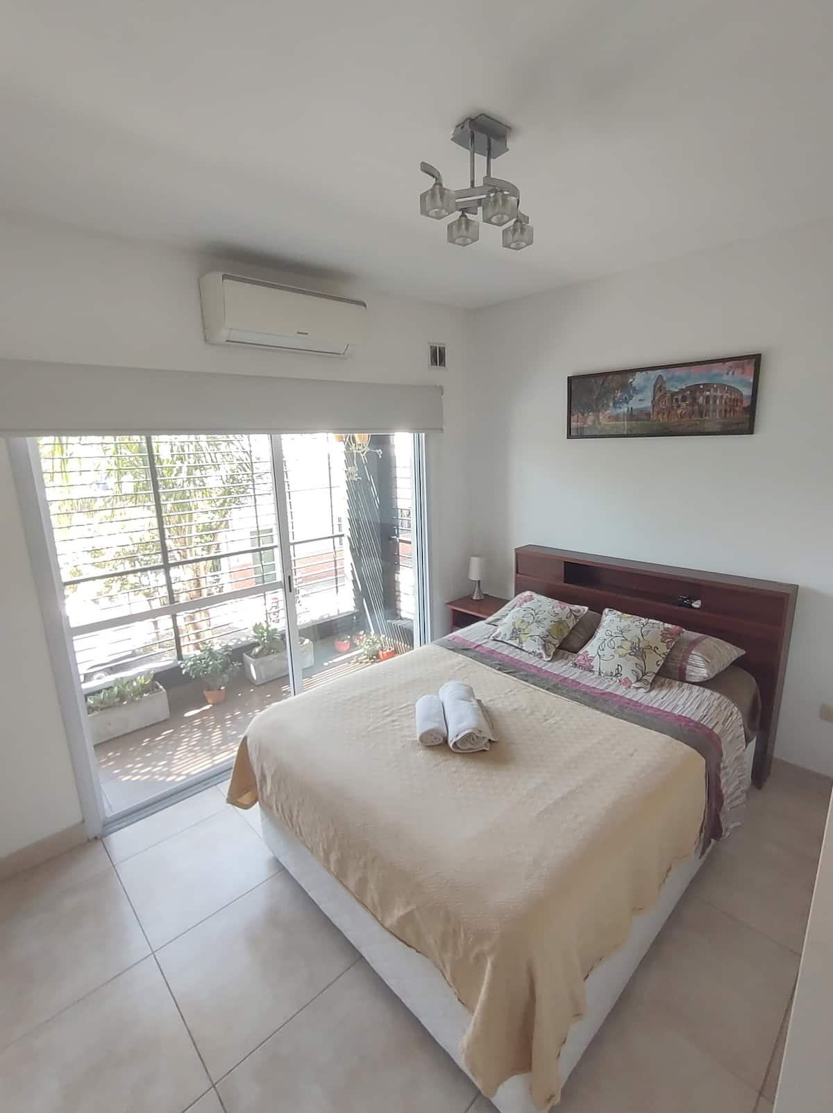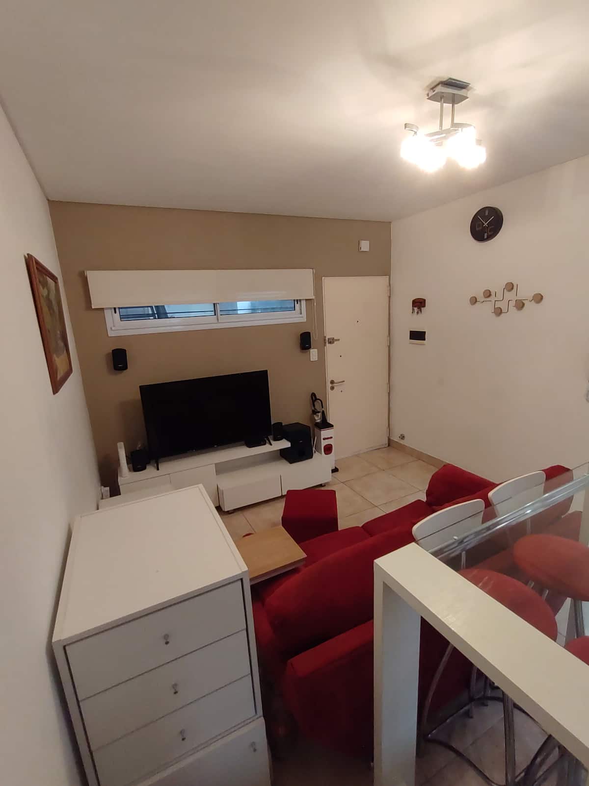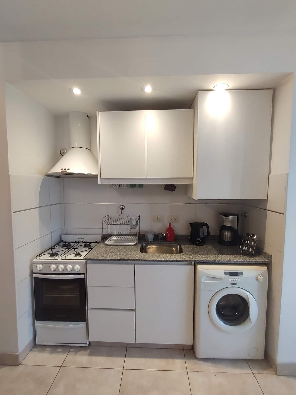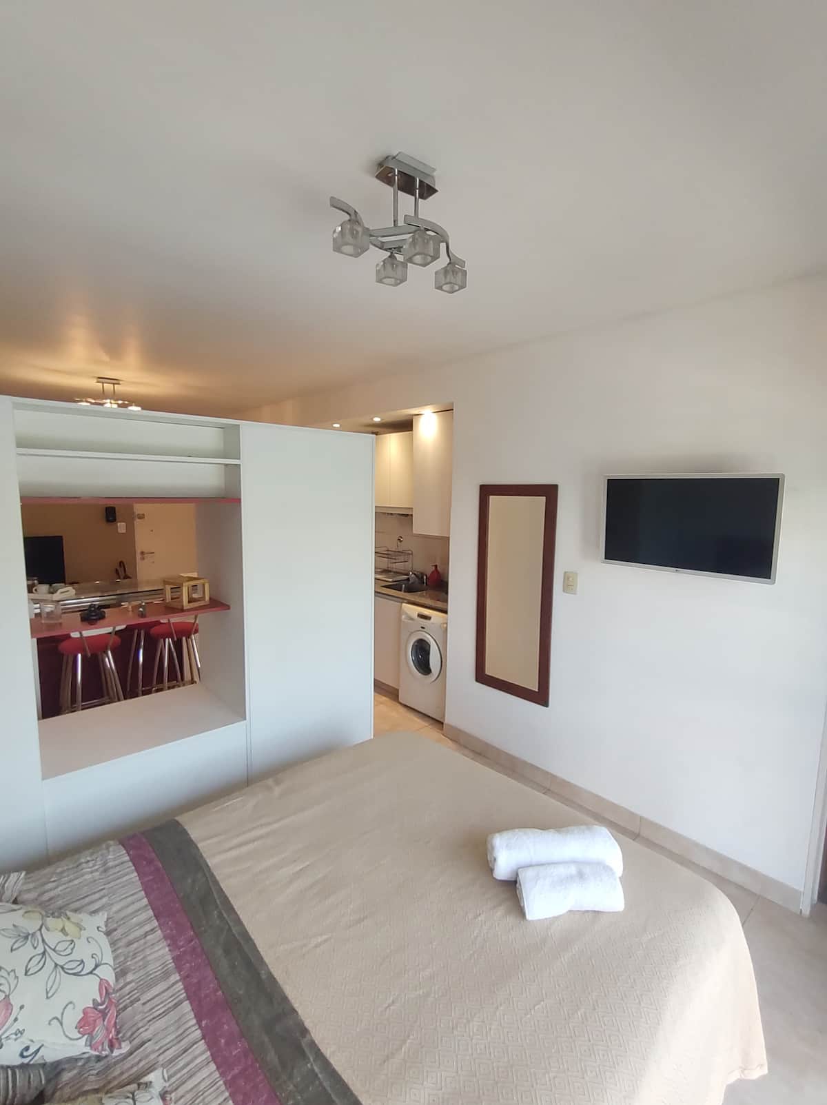 Bright and quiet studio apartment in Mataderos, with direct morning sunlight and good ventilation. The unit has access by stairs or elevator and is equipped with two TVs with cable and internet, an equipped kitchen with microwave, WiFi, and air conditioning (cold/heat). It also includes a washing machine and a drying rack. Located 1 block from Av. Gral. Paz, with public transport connections and a supermarket nearby.