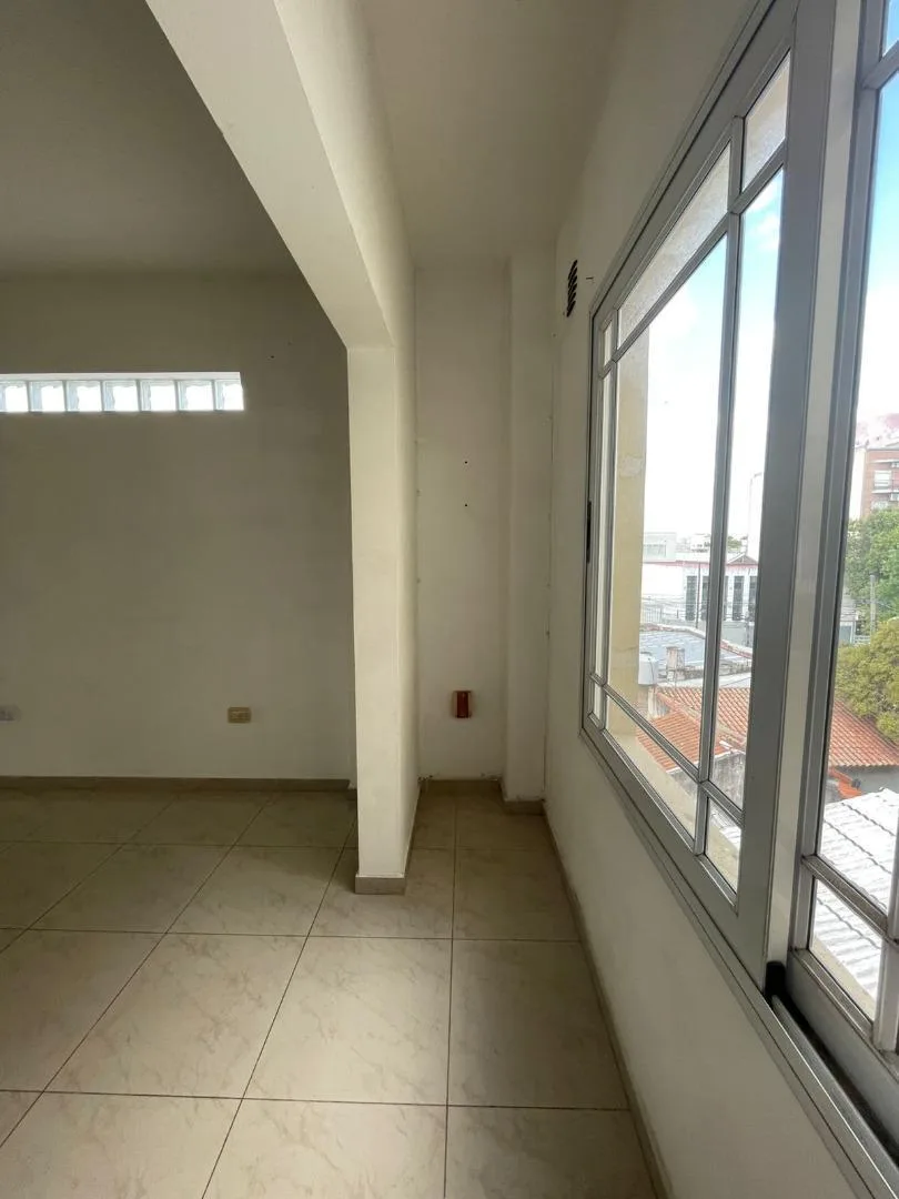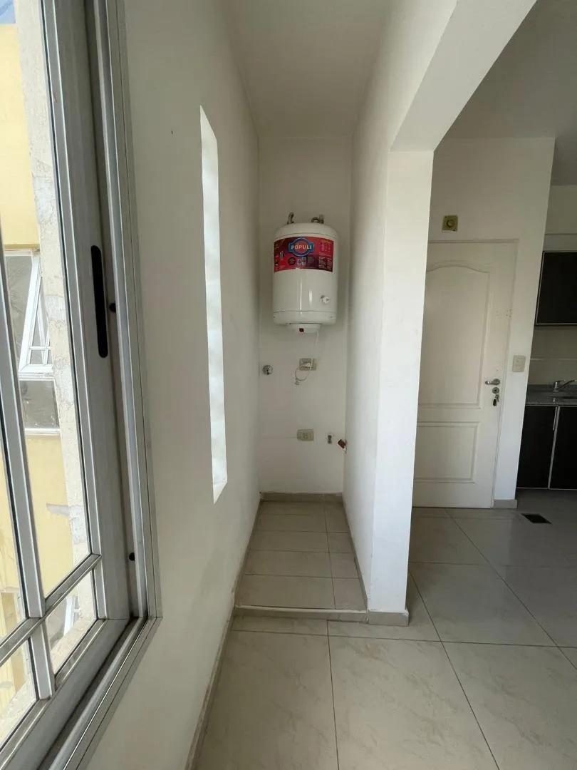Departamento de 2 ambientes en Merlo Centro, en el 3er piso H, con disposición contrafrente. Cocina con bajo mesada y alacena, termotanque; baño completo con bañera; dormitorio con placard integrado. El edificio cuenta con entrada de auto y cocheras disponibles. Alquiler $465.000, expensas $98.000 y cochera opcional $29.000. Ajuste trimestral por IPC.