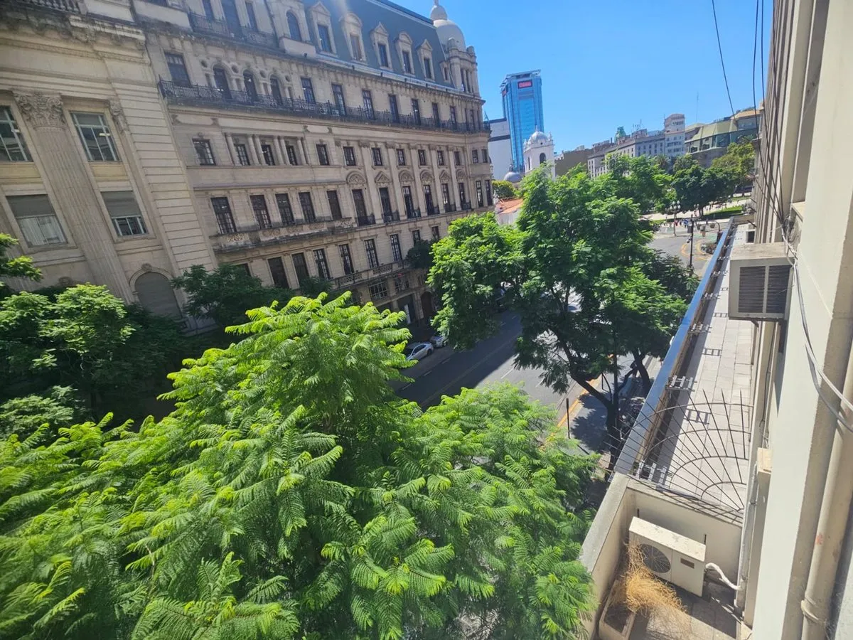 Departamento de 2 ambientes de 32 m² en Monserrat, en el 3° piso de un edificio de 9 pisos, con orientación al frente sobre Av. Presidente Julio A. Roca 546. El ambiente principal integra living comedor con kitchenette y cuenta con dormitorio con placard. Tiene baño completo. El edificio es histórico, construido en 1930.